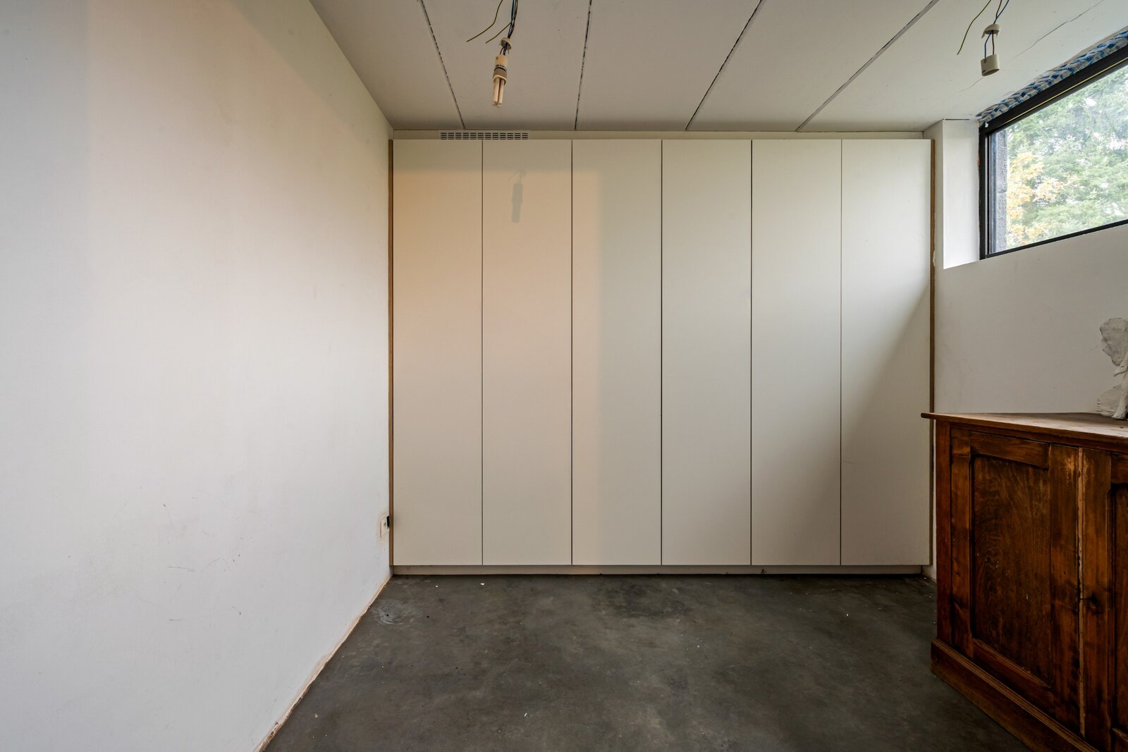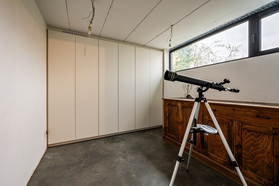 Deze eigendom beschikt over een gelijkvloerse afgesloten berging, ideaal voor het stallen van fietsen. Voorts bevindt er zich een inpandige garage en op de gelijkvloerse verdieping een ruime inkomhal met ingemaakte kasten, wasplaats en 2 slaapkamers of extra berging en 1 slaapkamer.