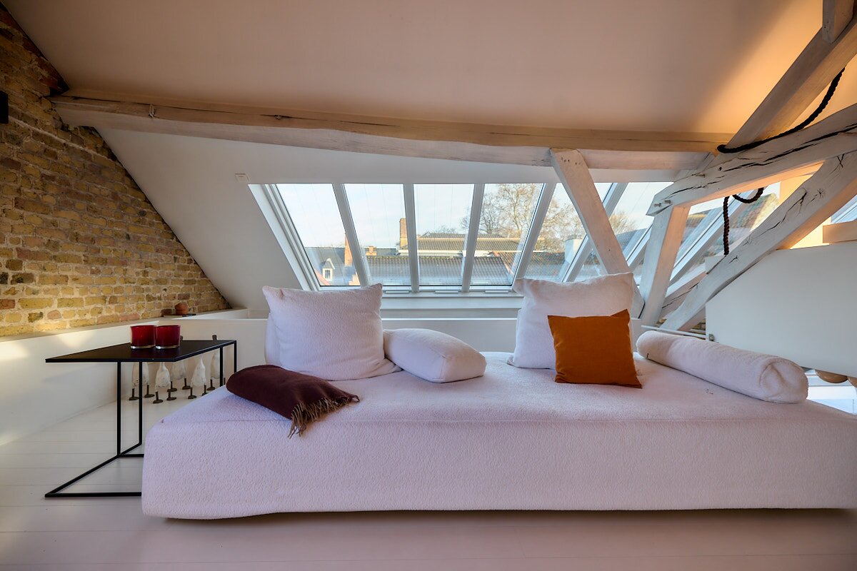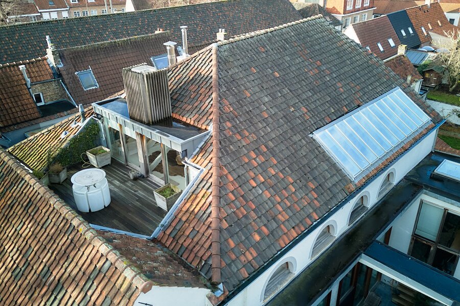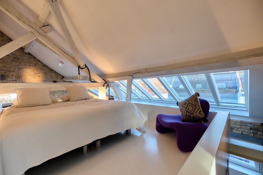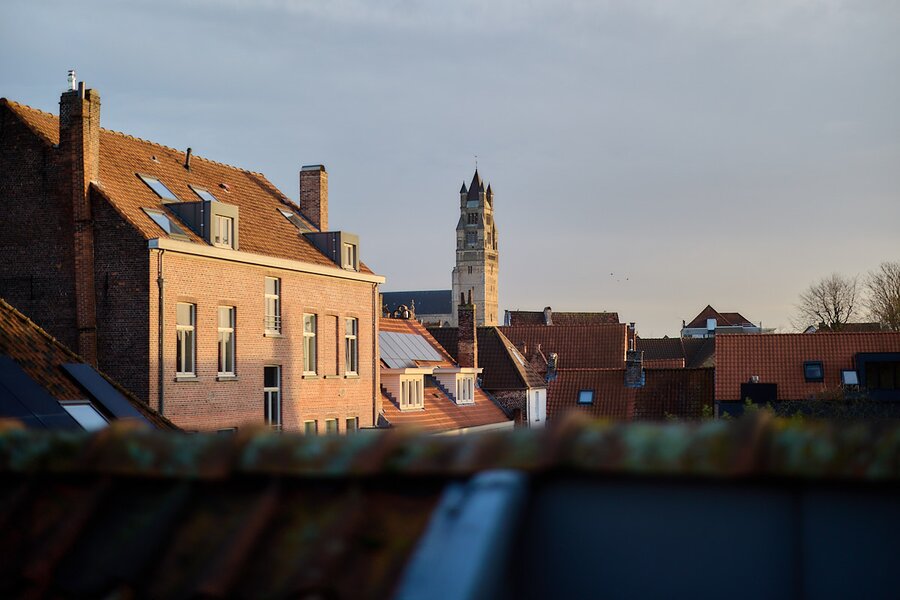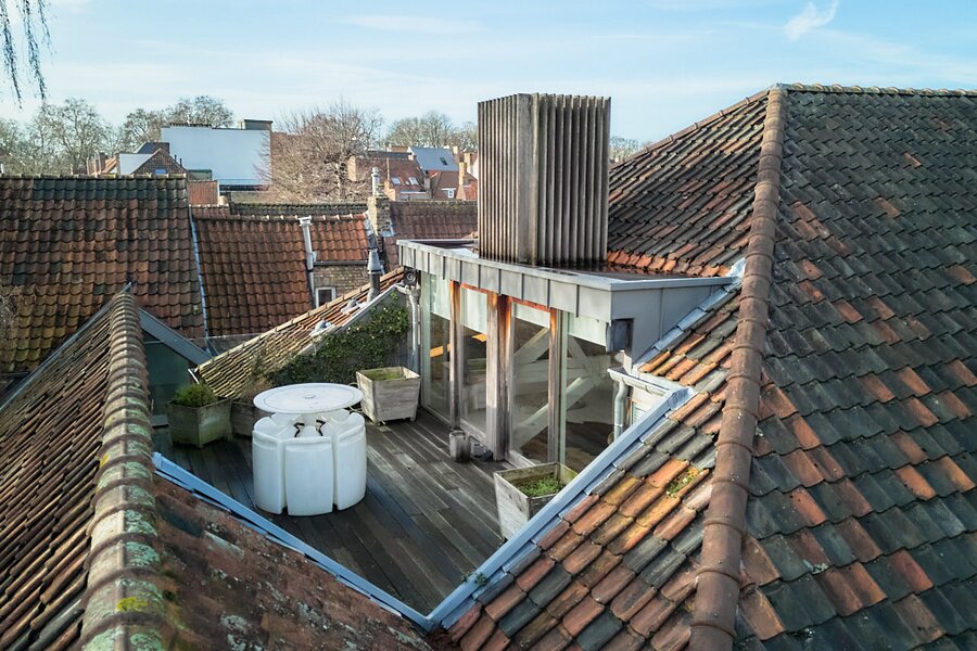 In Brugge zijn échte lofts in authentieke brouwerijen bijzonder schaars. Veel van deze panden verdwenen in het verleden voor nieuwbouw. Net daarom is deze loft zo uitzonderlijk: de originele schil bleef behouden, met robuuste volumes, karaktervolle structuren en een ziel die je voelt vanaf het moment dat je binnenstapt. Een grote troef is het zuidgericht terras met zicht op de Sint-Salvatorskathedraal.