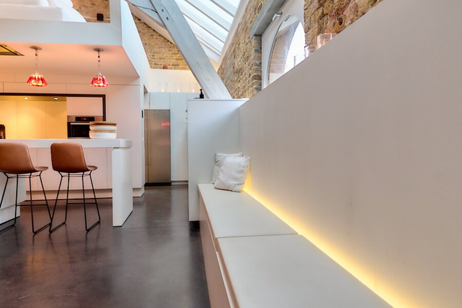 Met een indrukwekkende bewoonbare oppervlakte van ca. 300 m² biedt deze loft grootse volumes zonder ook maar één moment aan gezelligheid in te boeten. Integendeel: dit is een loft die uitzonderlijk warm aanvoelt. Cosy. Geborgen. Een instant gevoel van thuiskomen, midden in de stad.