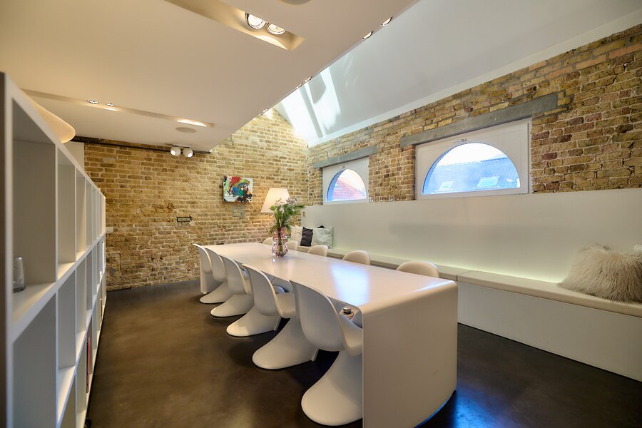 Op amper 300 meter van ’t Zand, verscholen in een rustig straatje in het historische centrum van Brugge (UNESCO Werelderfgoed), bevindt zich deze uitzonderlijke loft in een voormalige 19e-eeuwse brouwerij en limonadefabriek. Een zeldzaam voorbeeld van geslaagde herbestemming, met diep respect voor het verleden én een uitgesproken hedendaagse visie.