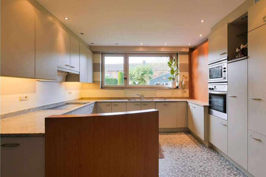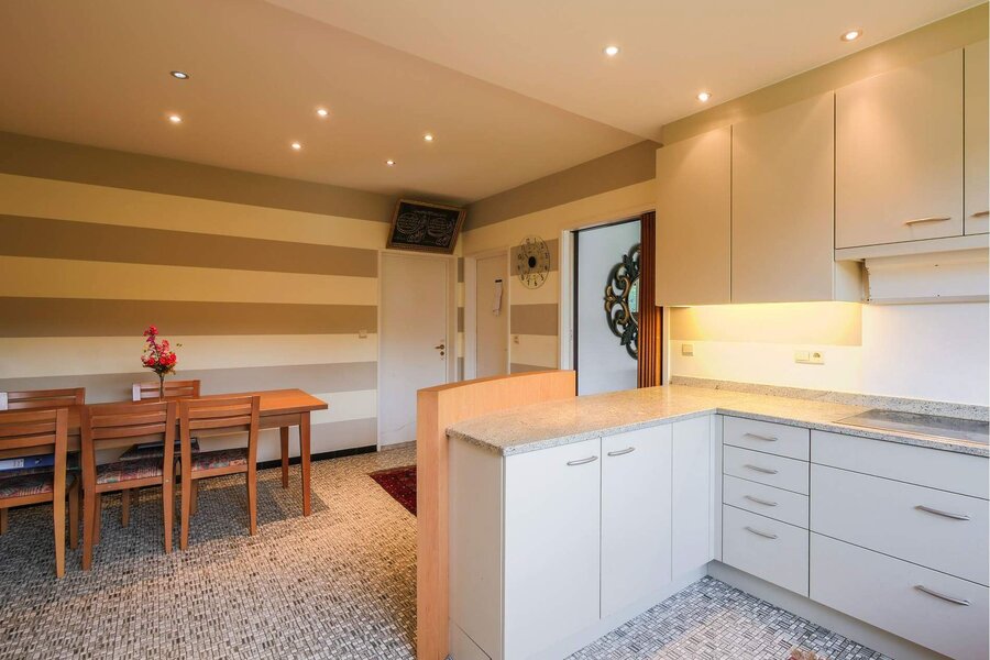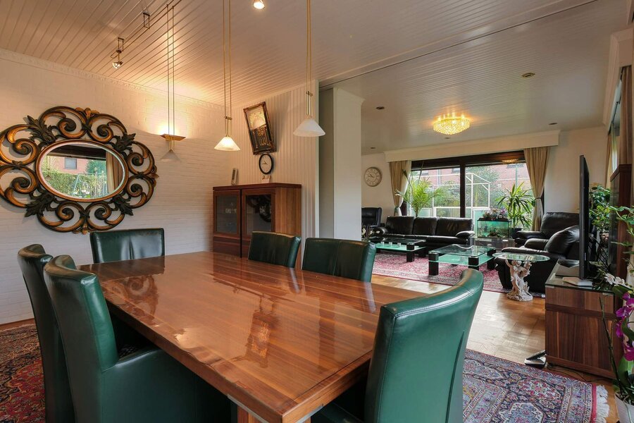 Deze woning uit 1972 biedt veel ruimte en mogelijkheden voor grote gezinnen of wie graag extra kamers heeft. Het perceel van 1110 m² met een tuin zorgt voor een groene en rustige omgeving, terwijl de ligging nabij invalswegen u vlot verbindt met het centrum en omliggende gemeenten. De buurt is aangenaam en praktisch, met park, ziekenhuis en voorzieningen op korte afstand.