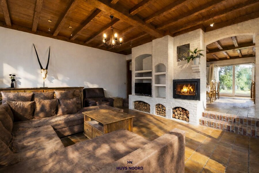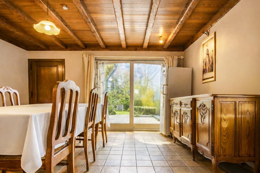 Op het gelijkvloers, via de inkomhal met gastentoilet, betreedt u de gezellige leefruimte voorzien van cosy zitruimte met gezellige haard en eetkamer met zicht op de zonnige tuin.