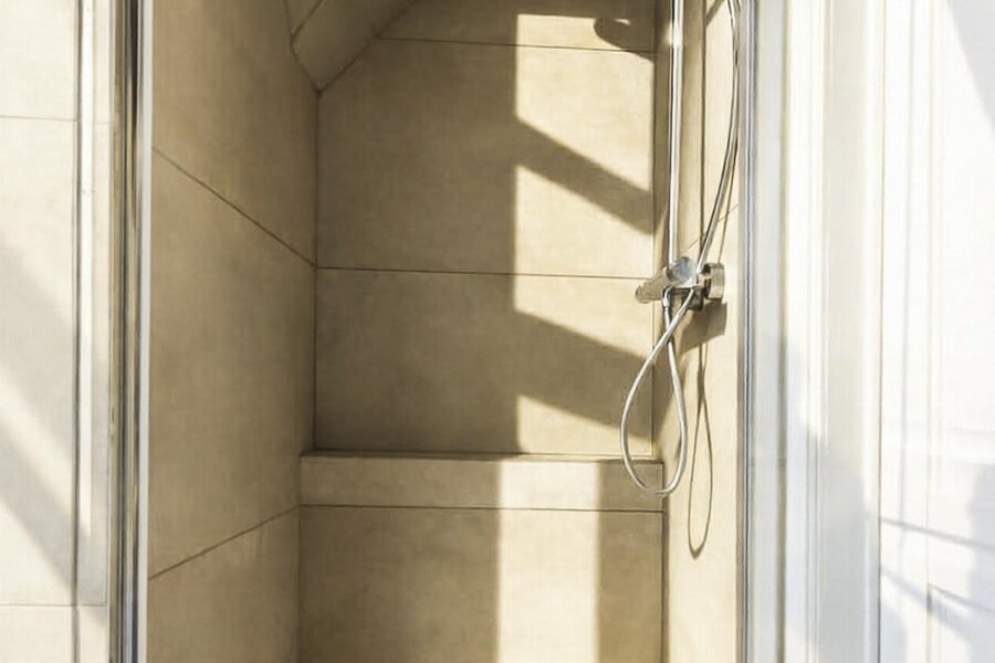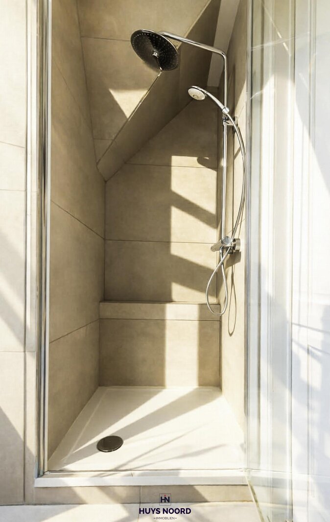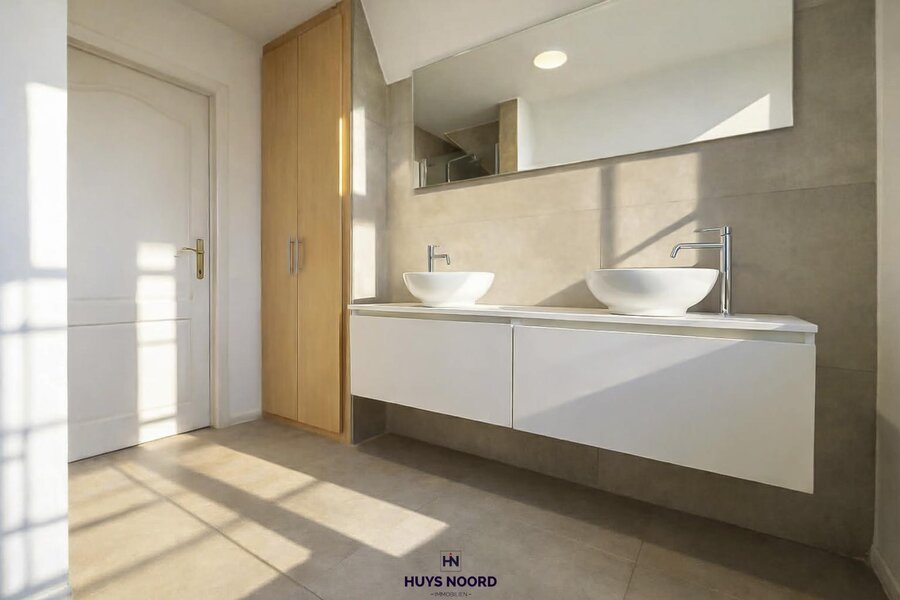 Op de eerste verdieping de Master slaapkamer met ensuite badkamer voorzien van dubbele wastafel en regendouche.