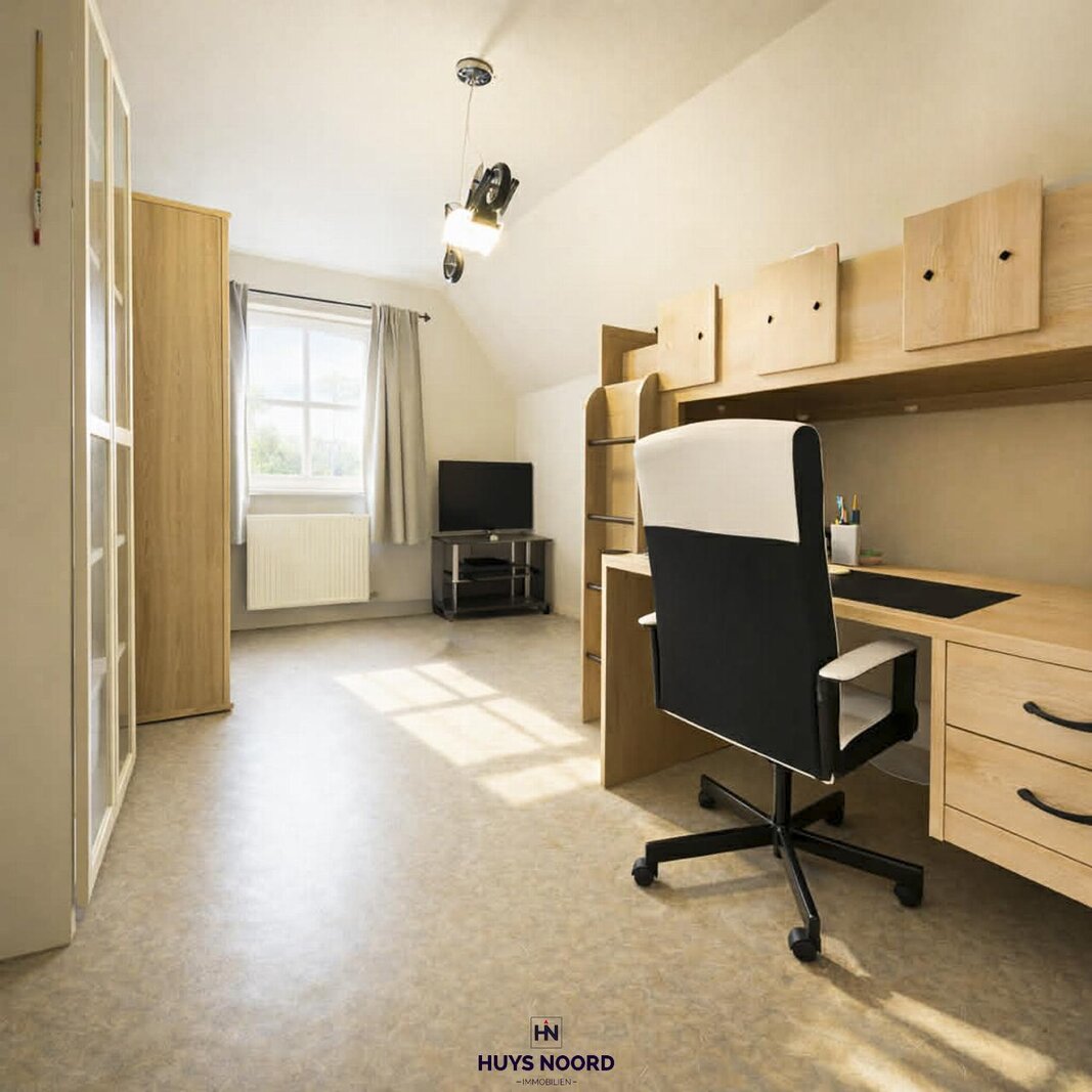 Verder een lichtrijk bureel of eerste slaapkamer op het gelijkvloers.