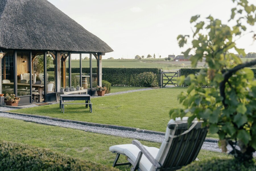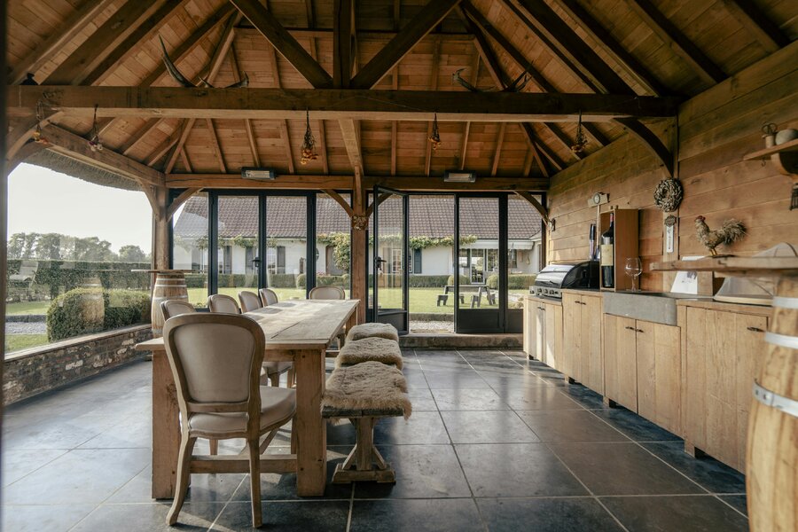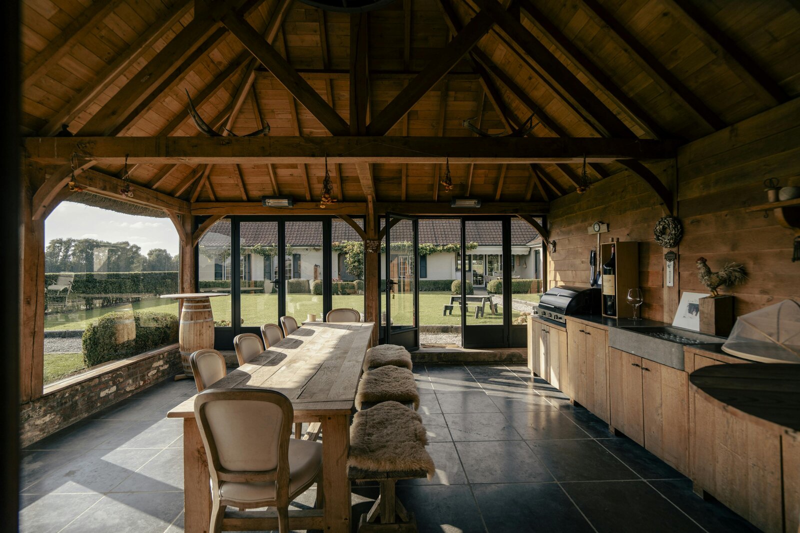 In de tuin bevindt zich een schitterend eiken bijgebouw in landelijke stijl, ontworpen om maximaal te genieten van de buitenomgeving. Hier combineer je charme met alle hedendaagse voorzieningen.