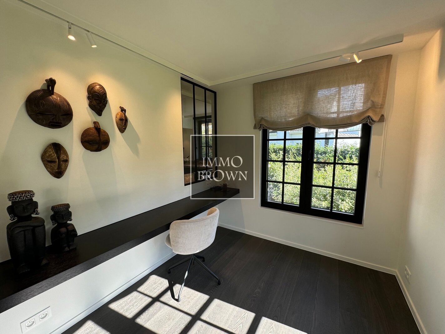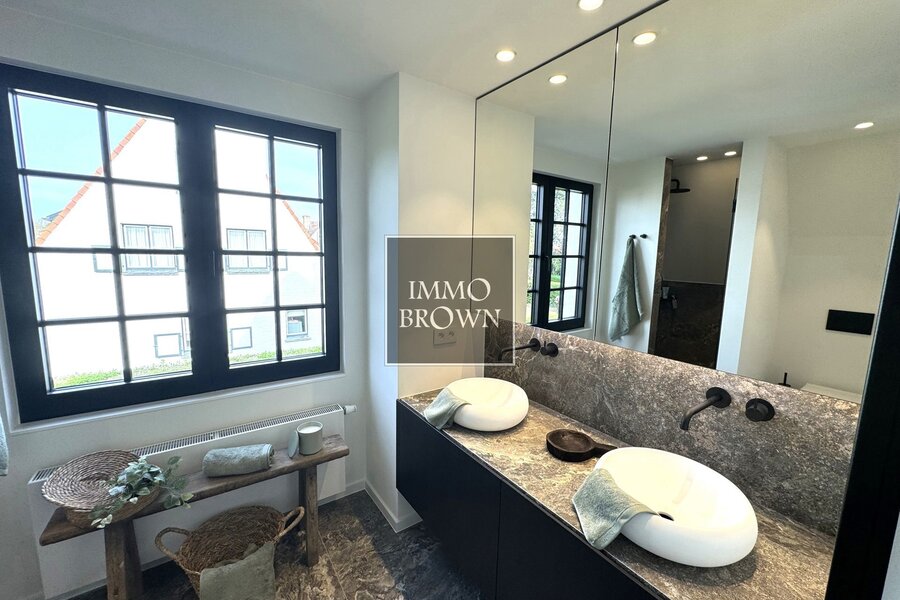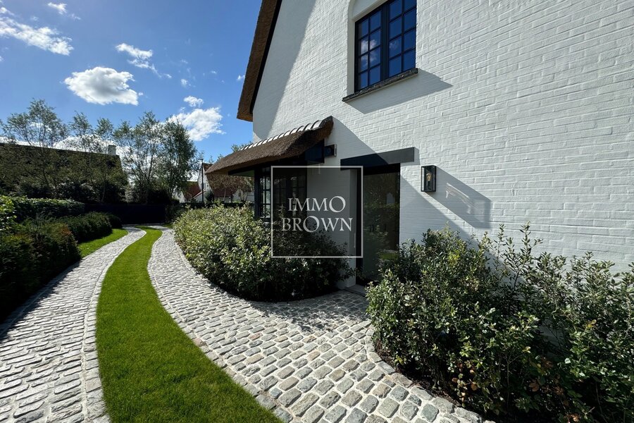 Deze prachtig vernieuwde, zongerichte villa bevindt zich op een uiterst serene en gegeerde locatie aan de rand van Het Zoute. De woning werd met oog voor detail gerenoveerd en bevindt zich op een prachtig perceel van 988 m², omringd door rust, groen en volledige privacy.