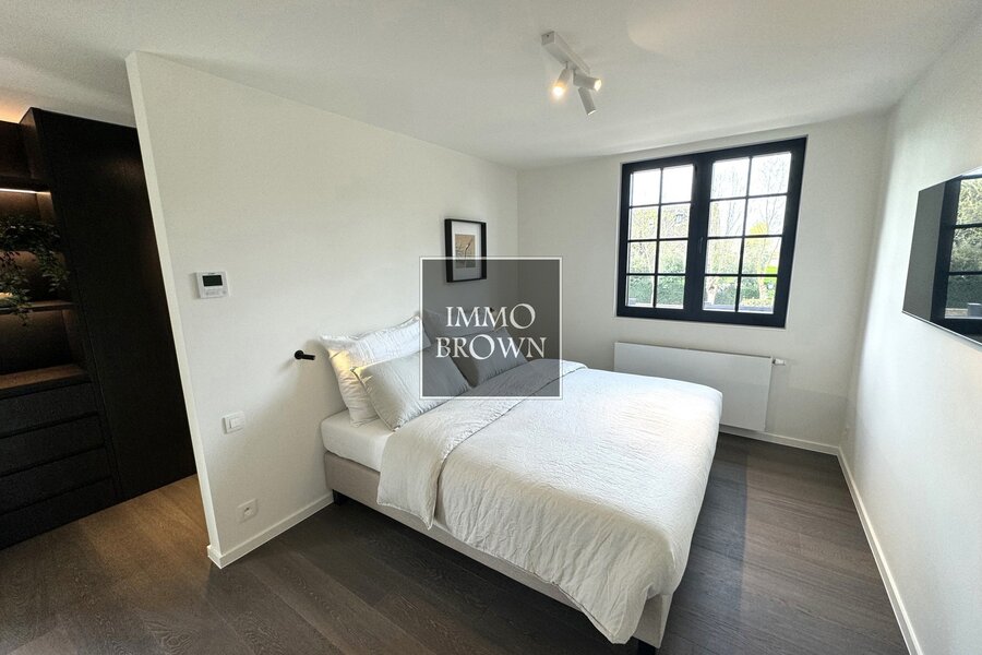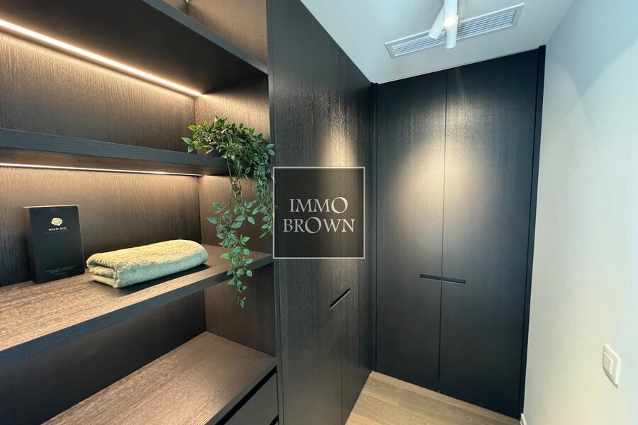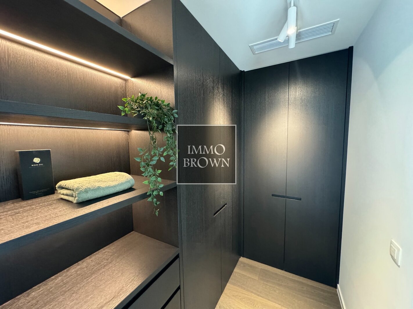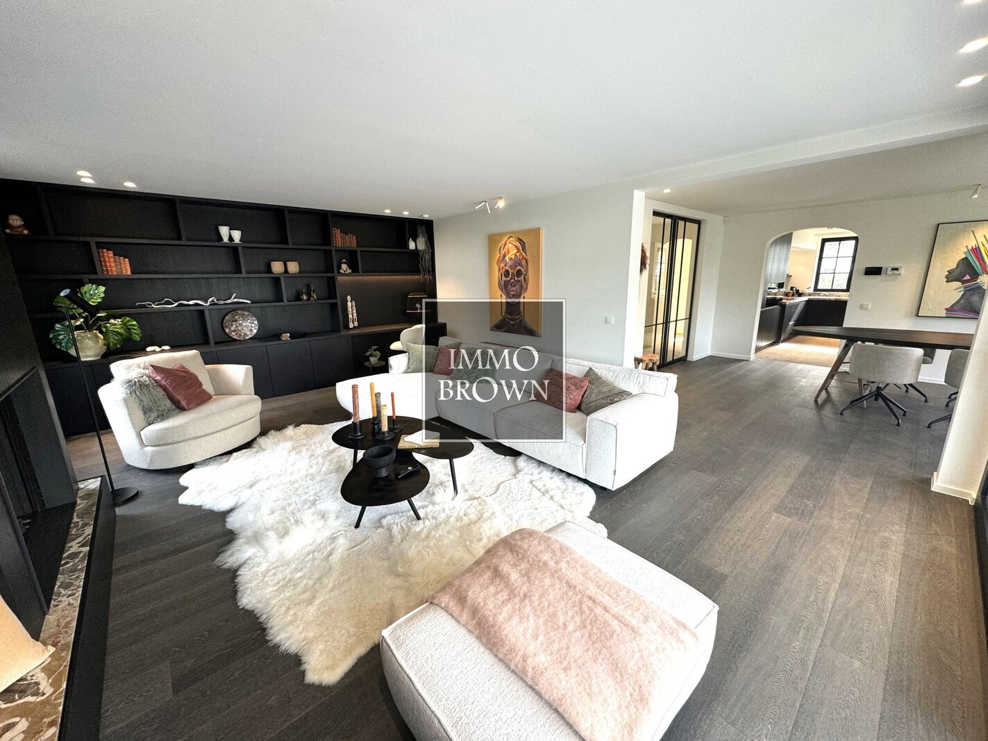 Bij het binnenkomen wordt u verwelkomd in een elegante inkomhal, voorzien van een vestiaireruimte en een stijlvol gastentoilet. De hoogwaardige afwerking zet zich meteen door in de rest van de woning.