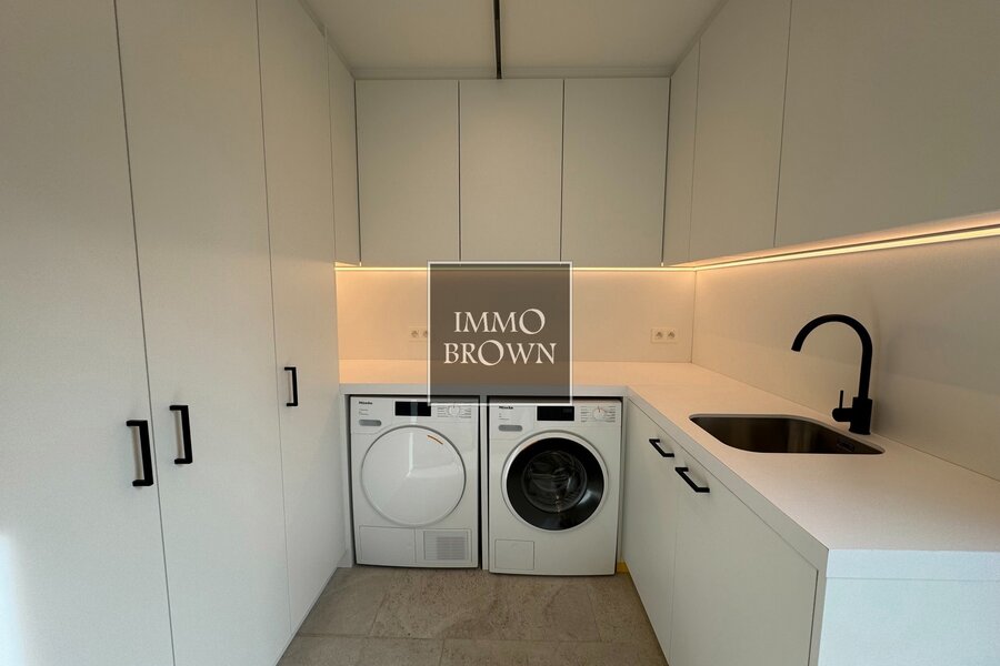 De volledig uitgeruste leefkeuken, afgewerkt met topapparatuur van Miele, vormt het kloppend hart van de villa. De keuken sluit naadloos aan op de lichtrijke leefruimtes, ideaal voor wie houdt van verfijnd wonen en gastvrij ontvangen.