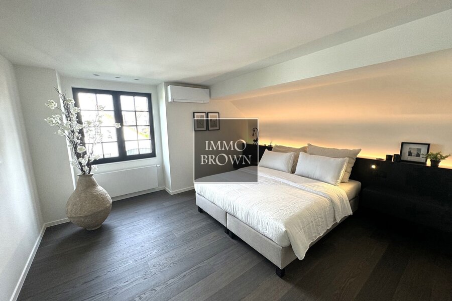 Op de eerste verdieping bevindt zich de uitzonderlijke mastersuite, een oase van comfort met een royale dressing en een luxueus uitgevoerde badkamer. Daarnaast zijn er drie volwaardige slaapkamers, elk met een eigen doucheruimte en lavabo. Op de nachthal is er nog een apart toilet.