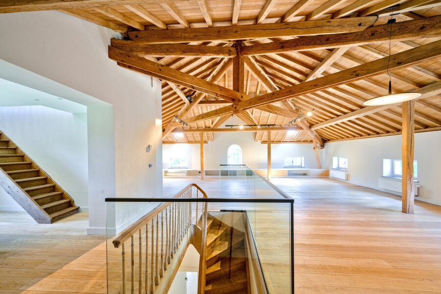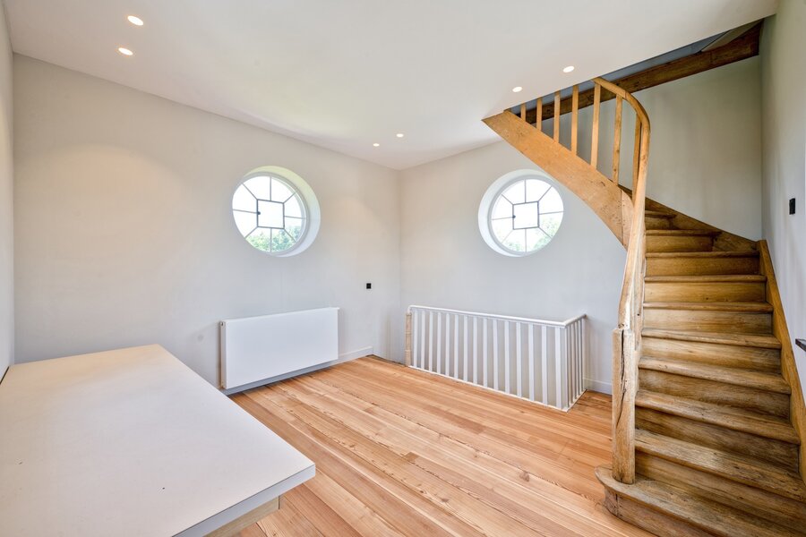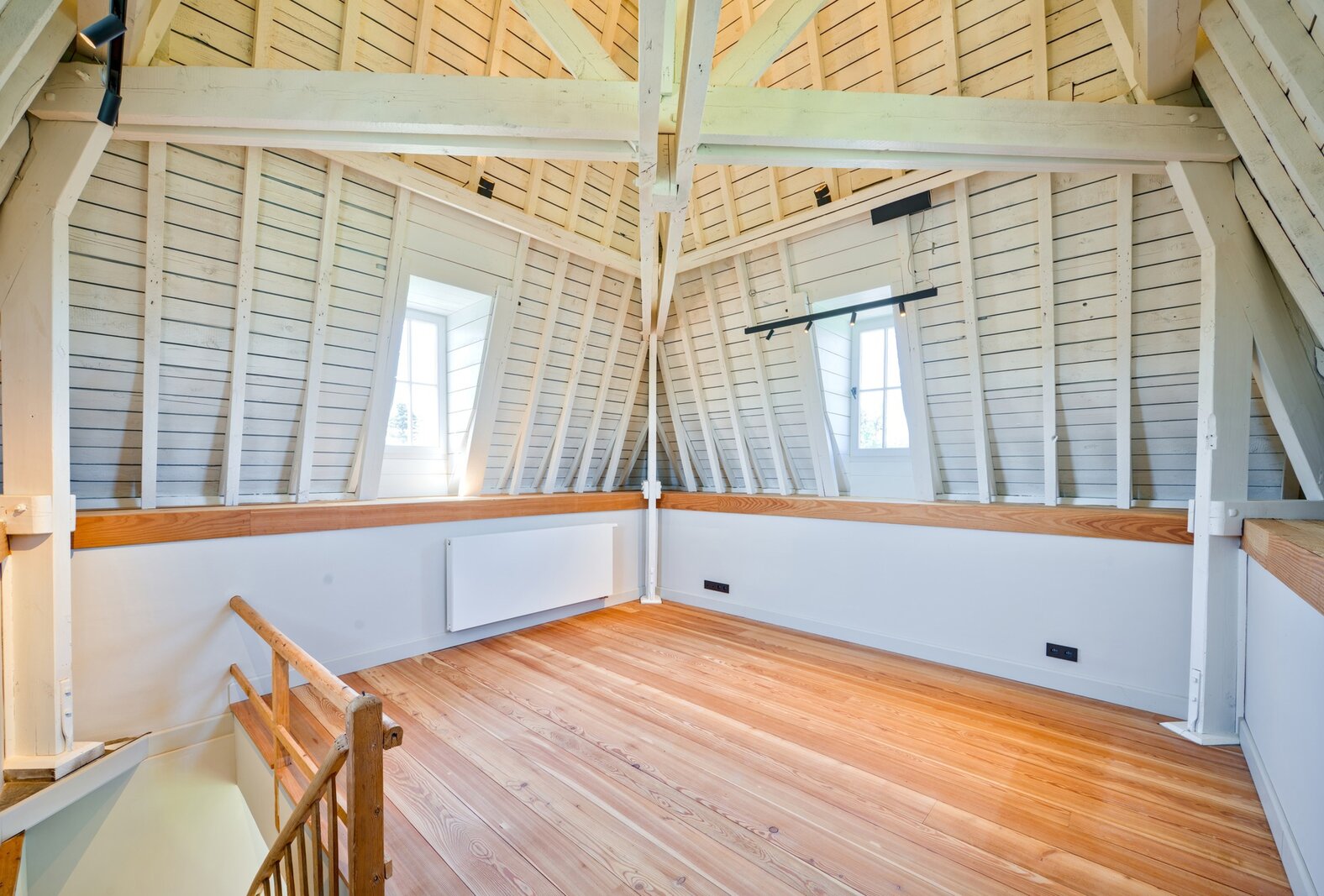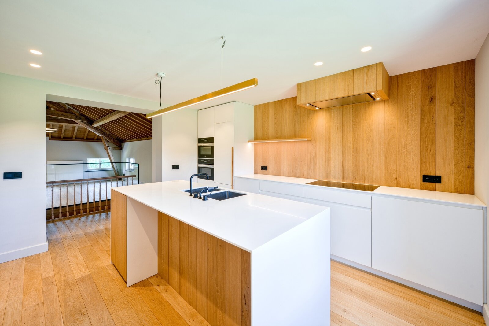 In een volledig gerenoveerd pand met karakter, prachtige duplex die de charme van het oude combineert met modern comfort. Het biedt een ruime woonkamer van ±96 m² met een superuitgeruste open keuken, twee grote slaapkamers (±31 m² en ±19 m²), evenals twee multifunctionele ruimtes (kantoor, familiekamer of 3e slaapkamer).