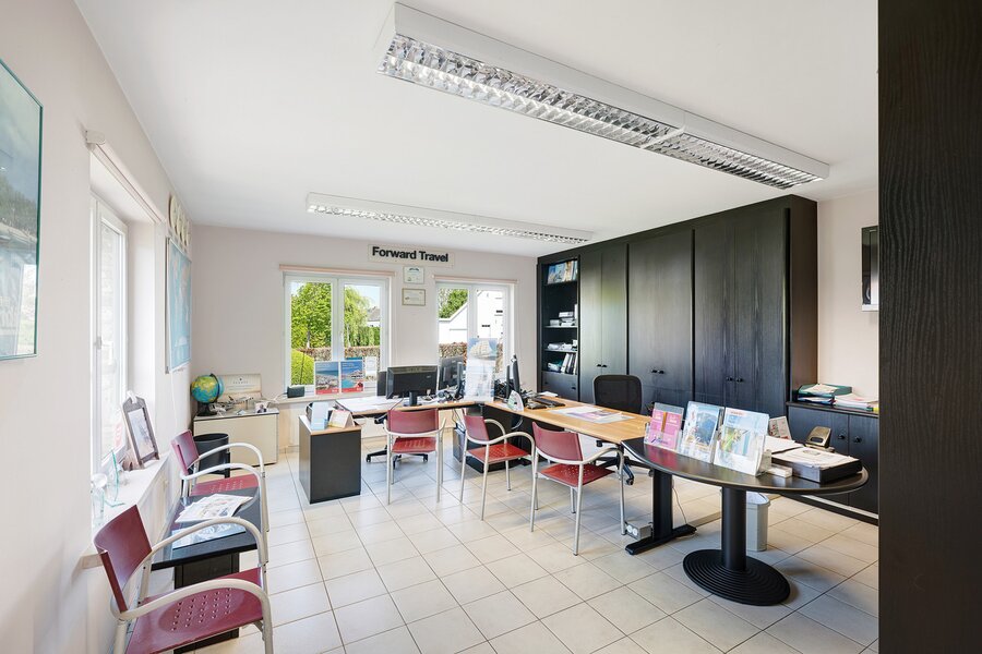 Aan de voorzijde van het gebouw bevinden zich 3 gelijkvloers handelsruimtes (waarvan momenteel 2 verhuurd) en een 4de handelsruimte op de 1ste verdieping. Deze ruimte kan mits aanpassing ook worden omgevormd tot extra slaapkamers, studio,... bij de woongedeelte (toegang mogelijk via overloop woonst).