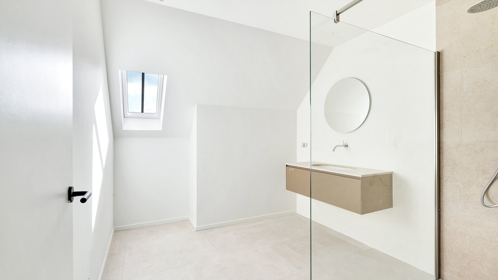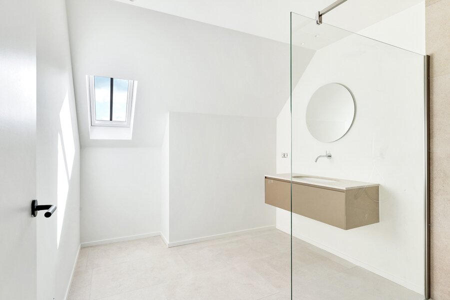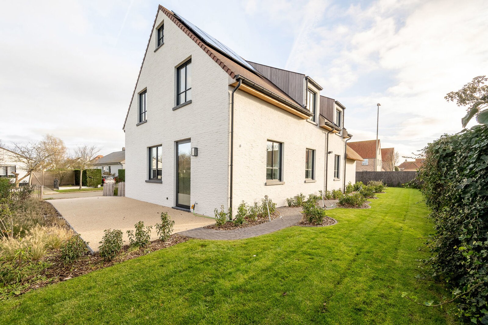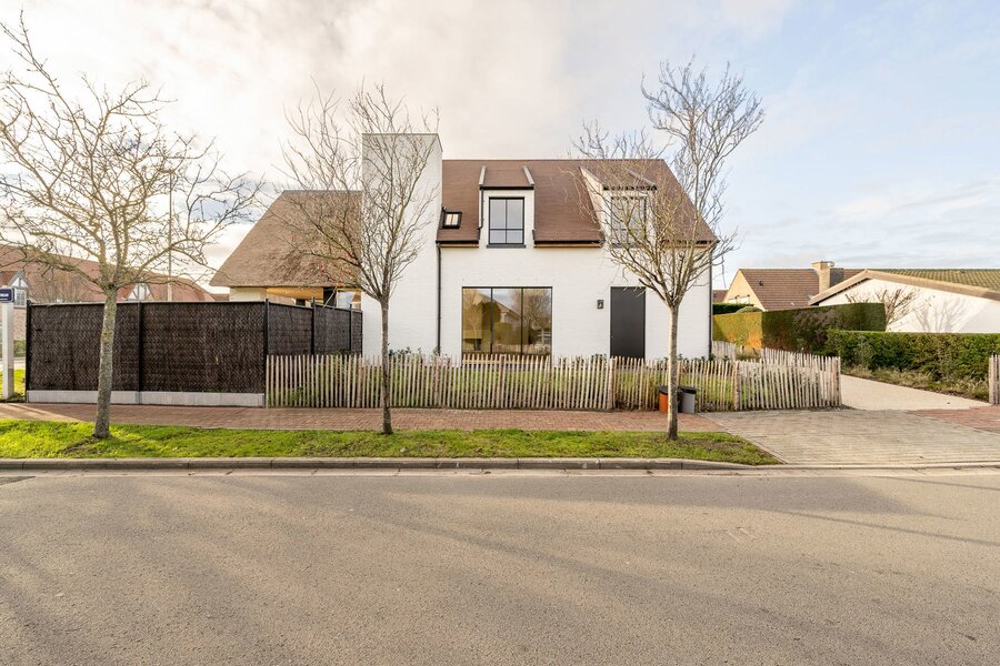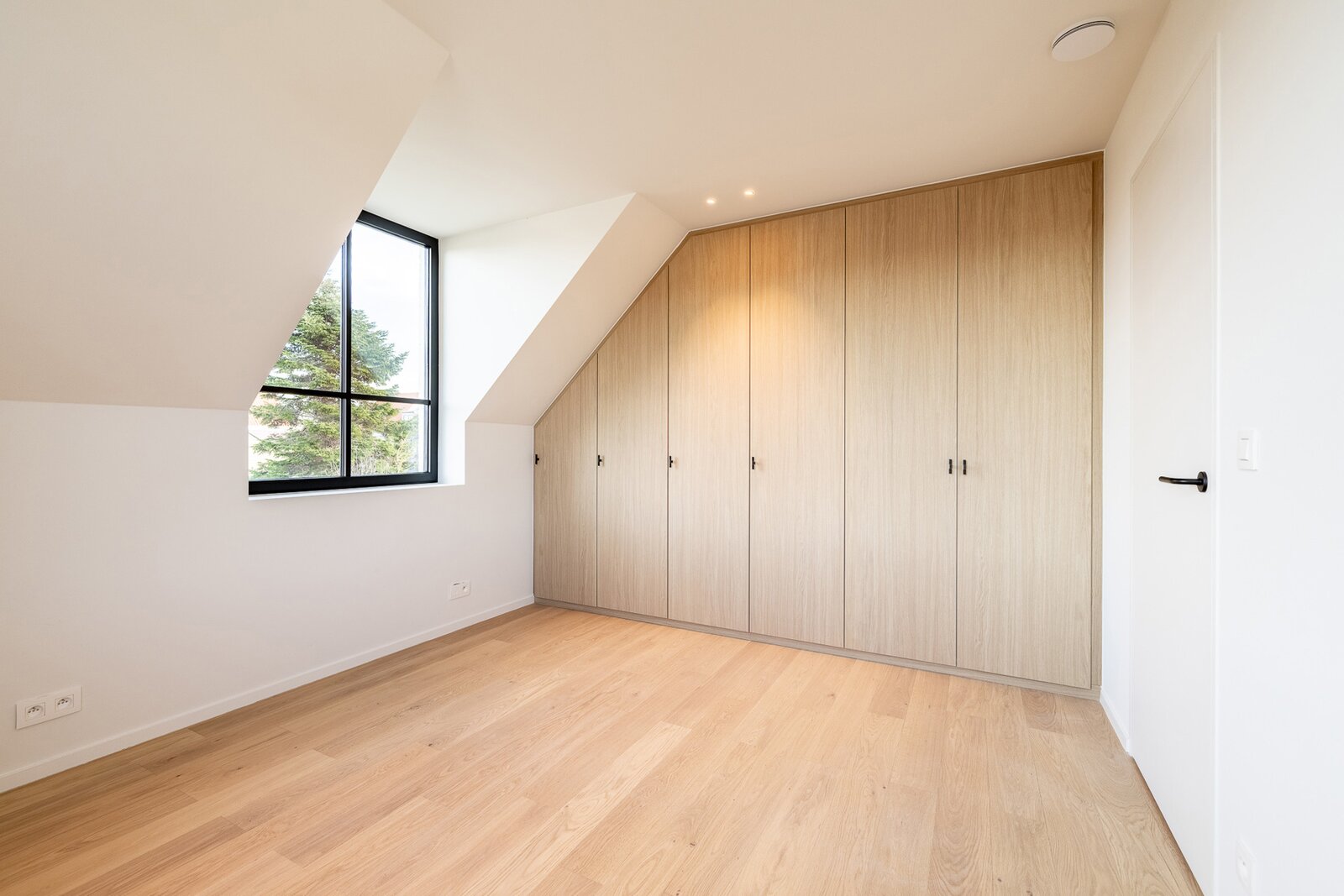 Op het gelijkvloers bevindt zich een stijlvolle inkomhal met gastentoilet en vestiaire, gevolgd door een ruime, lichtrijke woonkamer met gashaard die uitkijkt op het zonnige terras. Aansluitend vindt u een gezellige tv-hoek en een prachtige leefkeuken met praktische bijkeuken. Verder zijn er nog een aparte wasruimte en extra berging aanwezig.
