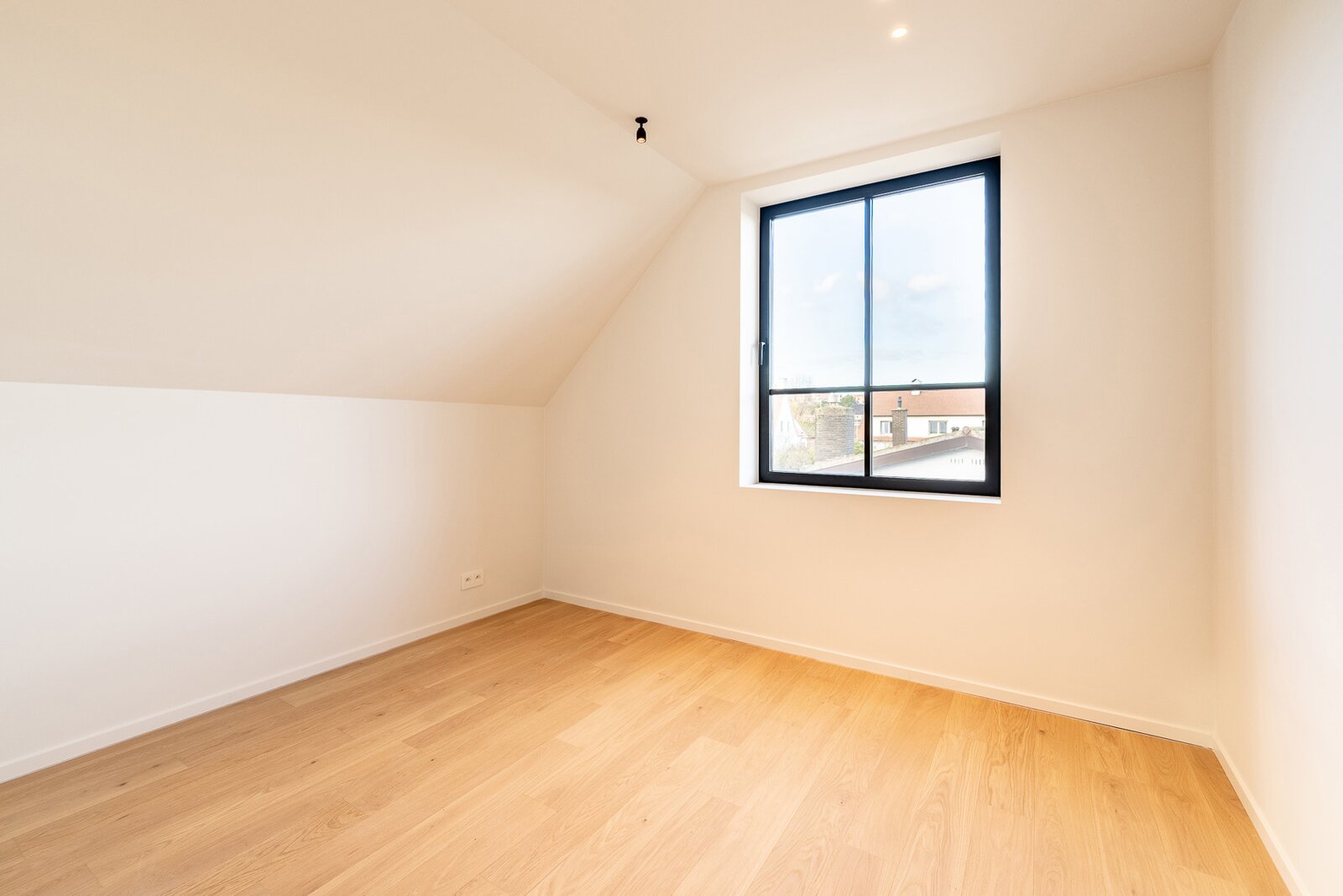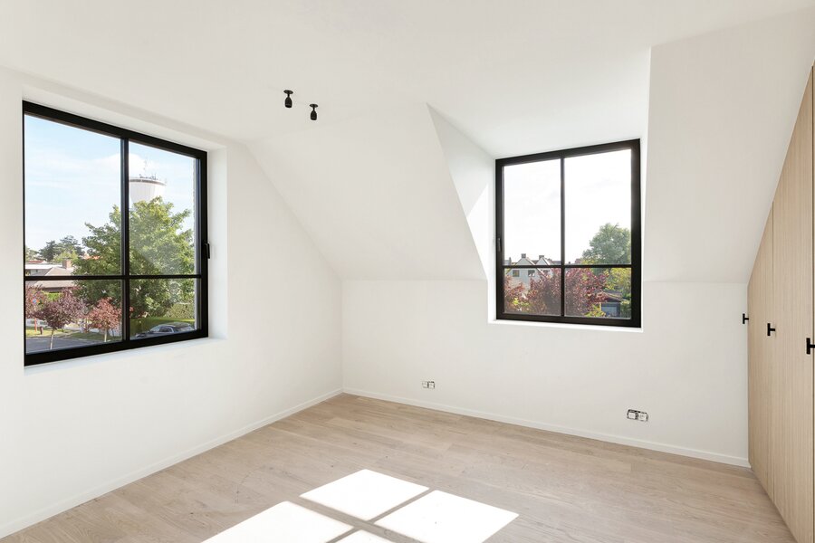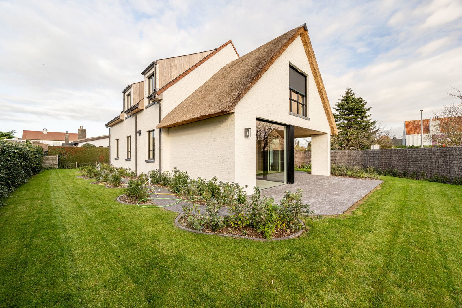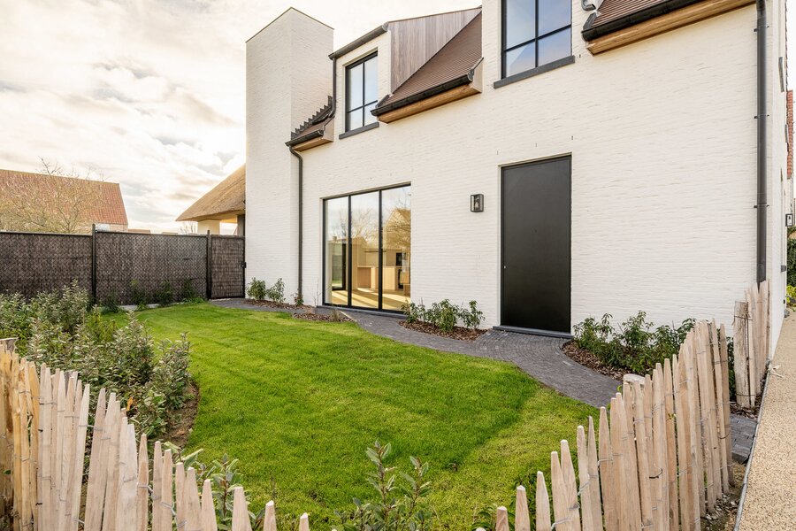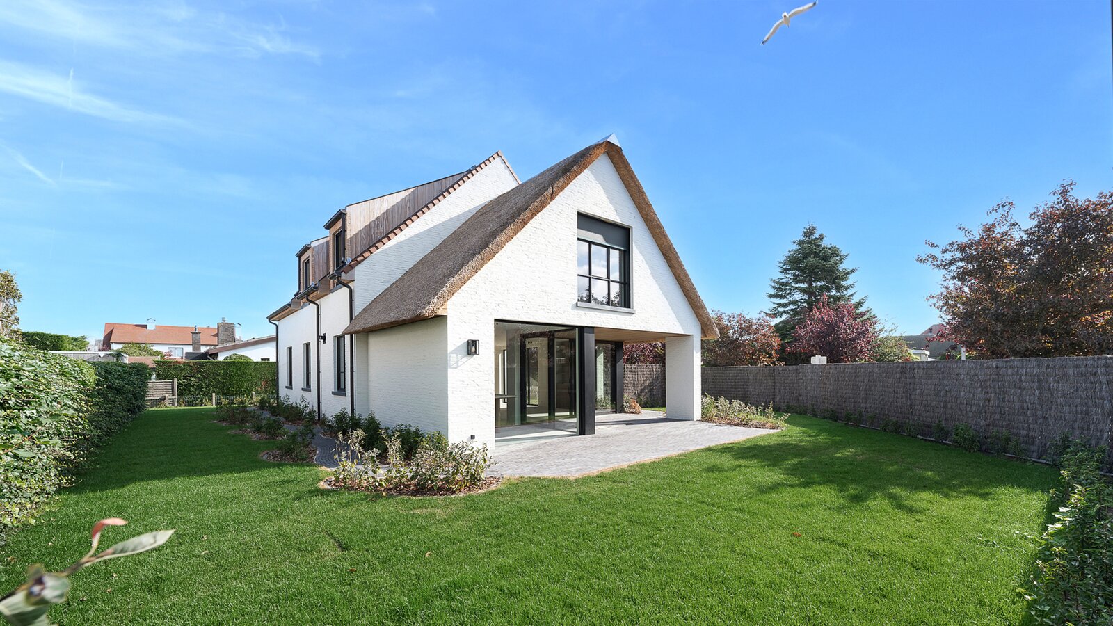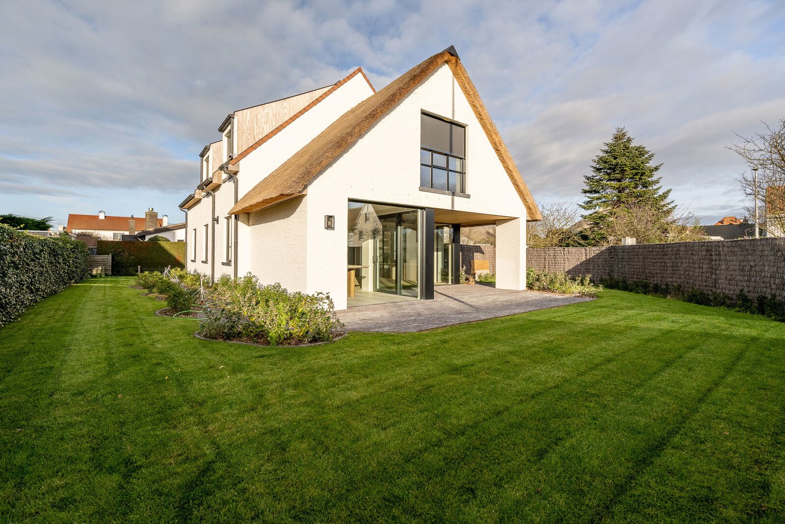 Op het gelijkvloers bevindt zich een stijlvolle inkomhal met gastentoilet en vestiaire, gevolgd door een ruime, lichtrijke woonkamer met gashaard die uitkijkt op het zonnige terras. Aansluitend vindt u een gezellige tv-hoek en een prachtige leefkeuken met praktische bijkeuken. Verder zijn er nog een aparte wasruimte en extra berging aanwezig.