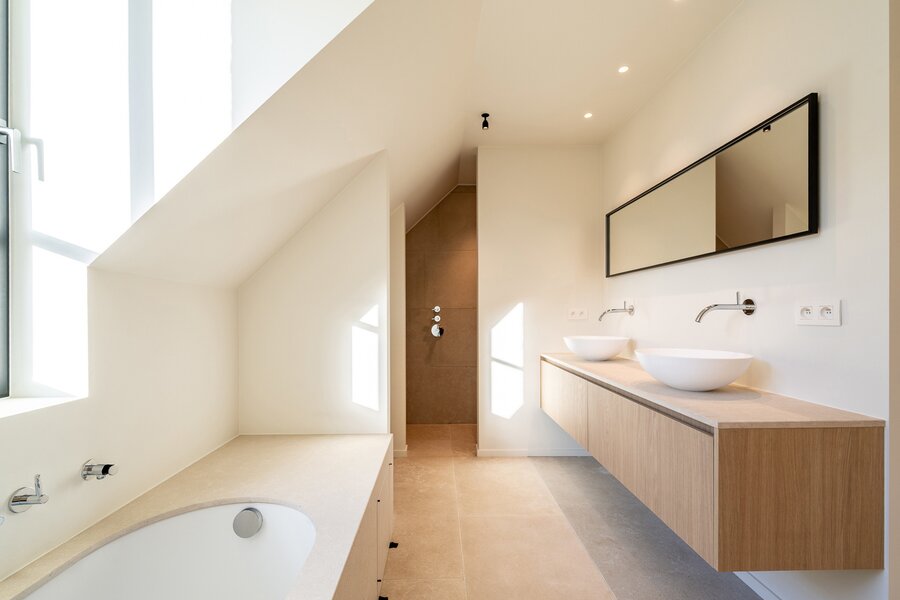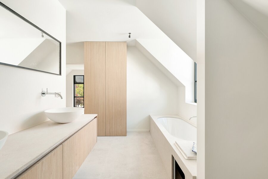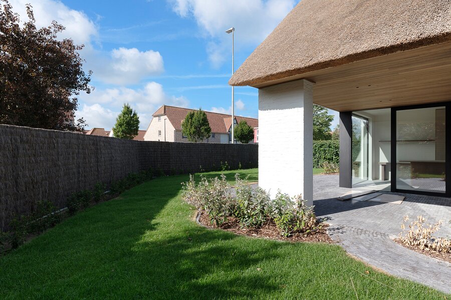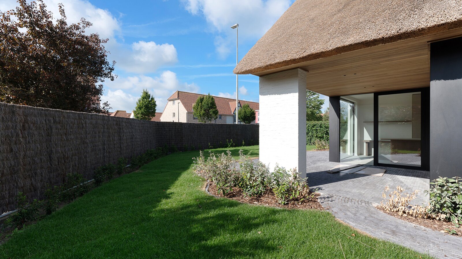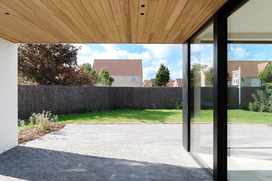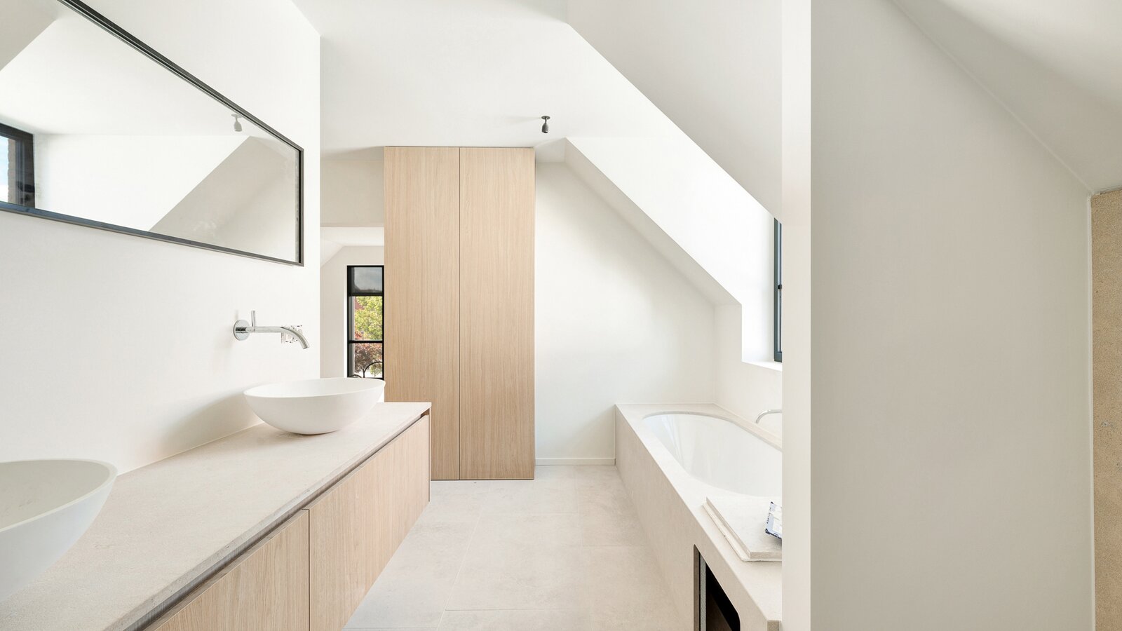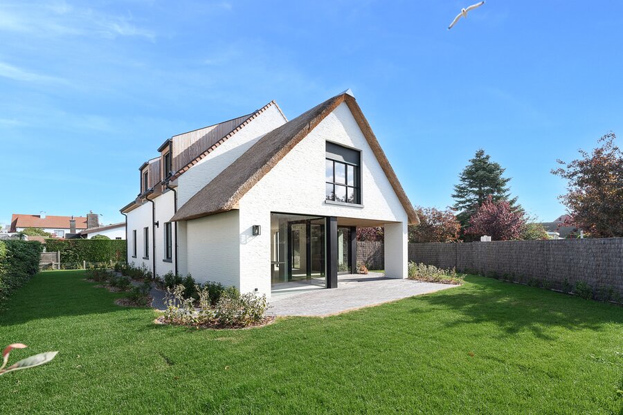 Op het gelijkvloers bevindt zich een stijlvolle inkomhal met gastentoilet en vestiaire, gevolgd door een ruime, lichtrijke woonkamer met gashaard die uitkijkt op het zonnige terras. Aansluitend vindt u een gezellige tv-hoek en een prachtige leefkeuken met praktische bijkeuken. Verder zijn er nog een aparte wasruimte en extra berging aanwezig.