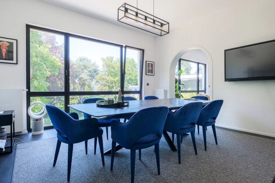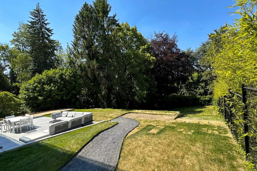Ukkel/Prins d'Orange, in een groene omgeving, prachtige gerenoveerde villa van ± 361 m² bruto op een perceel van 11 are met een tuin van ± 830 m² en twee terrassen. Indeling: inkomhal, bureau van 14 m², hal die toegang geeft tot een salon van 34,5 m², eetkamer van 20 m², superuitgeruste open keuken van 21 m², gastentoilet en vestiaire. Boven zijn er 4 slaapkamers (29, 22.5, 22.5 en 12 m²), twee badkamers (8.5 en 6.5 m²) en een terras van 35 m². Op tuinniveau, 46 m² multifunctionele ruimte, 17 m² studeerkamer, kelder en wasruimte. Ook: uitgebreide renovatie in 2021, conforme elektra, dubbele beglazing. Een uitzonderlijk huis in het mooiste deel van Ukkel, dat gezien moet worden. PEB D. Een must-see!