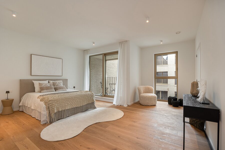 Dit hoogstaande en energiezuinige woonconcept omvat een divers aanbod van 18 appartementen, van compacte studio’s tot luxueuze penthouses. Het gebouw is een ontwerp van de befaamde architect Luc Binst en straalt klasse uit tot in de kleinste details.