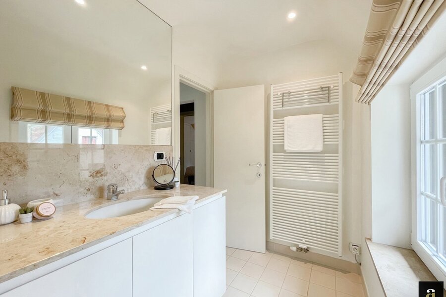 Koppelvilla met een perfecte oriëntatie verscholen in een paadje in het Zoute op enkele passen van het Dominicanenkerkje en de zee. Indeling: inkom met gastentoilet, volledig geïnstalleerde keuken met ontbijthoek, praktische berging, lichtrijk salon met open haard en eetkamer uitgevend op de zuidgerichte tuin. Op de eerste verdieping: Master bedroom met douchekamer ensuite (douche, lavabo en toilet). Tweede en derde ruime slaapkamer voorzien van ingemaakte kasten. Afzonderlijke douchekamer met douche en lavabo. Bureel of tv-kamer. Op de 2e verdieping: slaapkamer en 2 bijkomende ruimtes. Inpandige garage en toegang tot de ruime kelder. Kelder met onder andere wijnkelder, bergruimte...Meerdere parkeerplaatsen aan de villa. Contacteer ons voor een bezoek in te plannen.