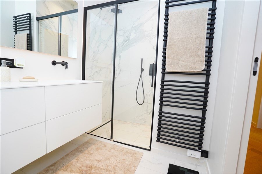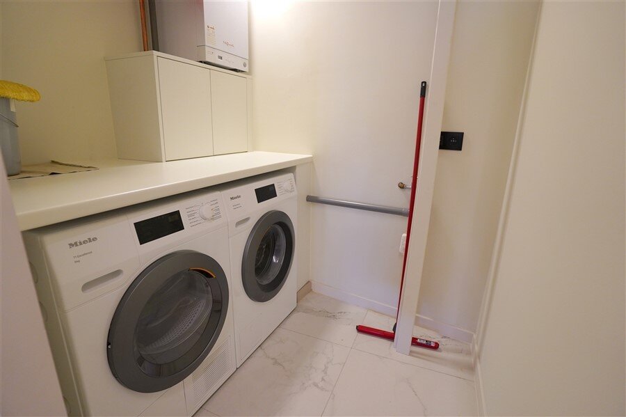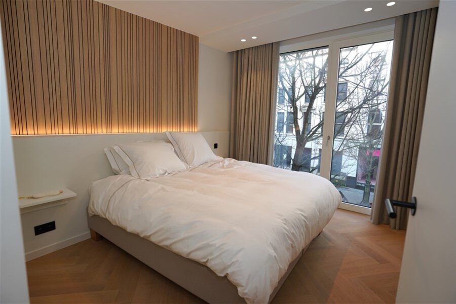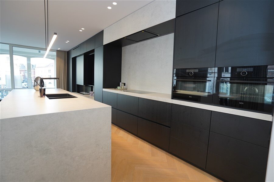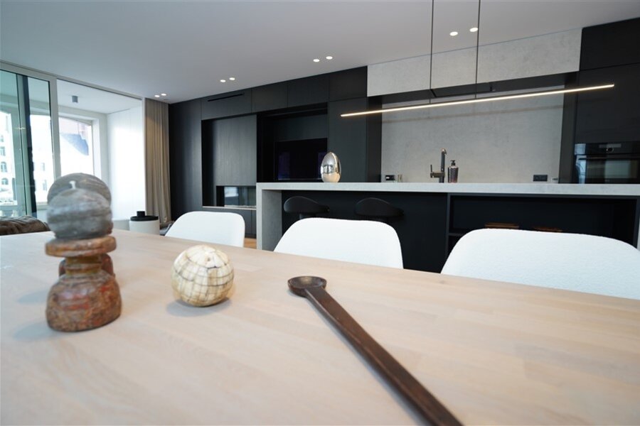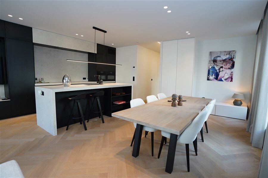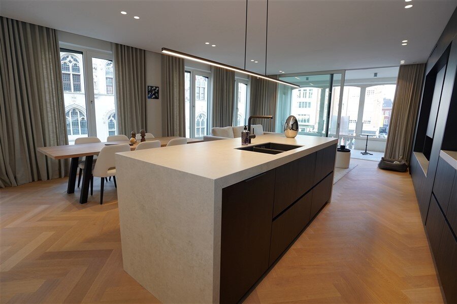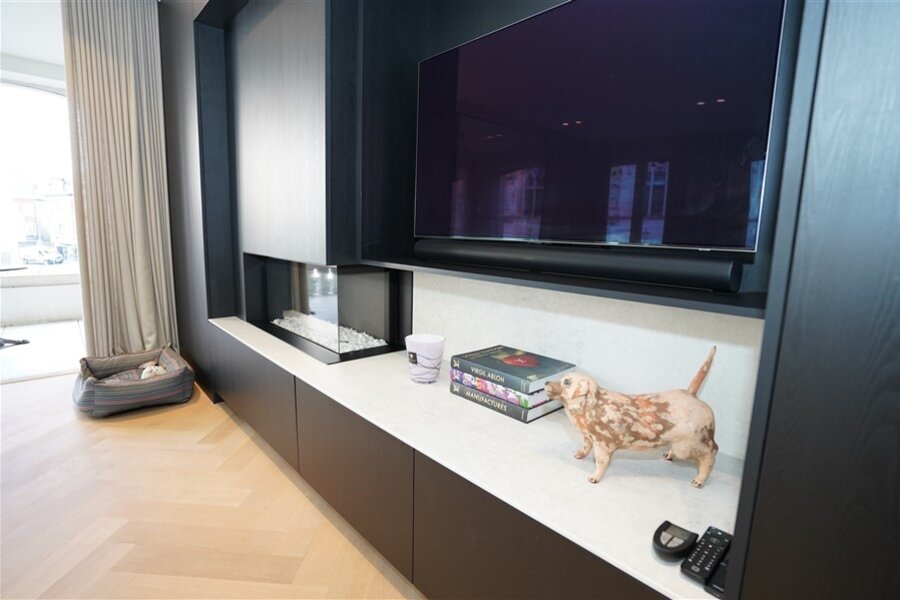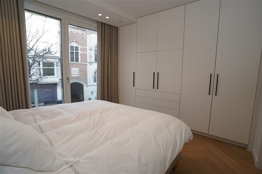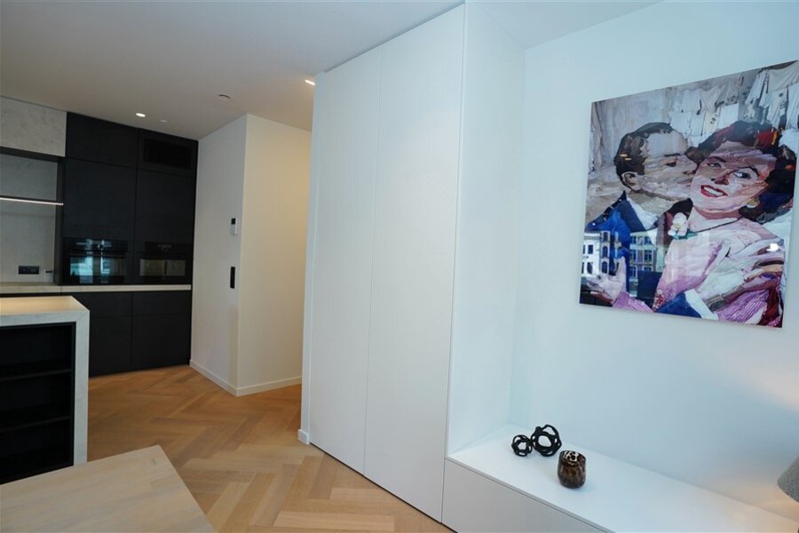 Een appartement waar alles klopt. Strakke lijnen, hoogwaardige afwerking, en een haard die niet alleen warmte geeft, maar ook instant gezelligheid. De ruime leefruimte nodigt uit om het leven te vieren! Moderne keuken in wit en zwart – stijlvol én praktisch. Deze keuken combineert strak wit met stoer zwart. Het grote werkblad biedt volop ruimte om te koken, bakken of gezellig ontbijten. Hoogwaardige toestellen én slimme opbergoplossingen. Heerlijk overdekte terras: Doe maar of je een VIP bent in je eigen stad. Er zijn twee slaapkamers met ingebouwde kasten ze zorgen voor rust en orde. De badkamer is ingericht met een comfortabel ligbad, inloopdouche en dubbele lavabo.