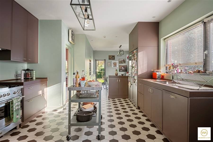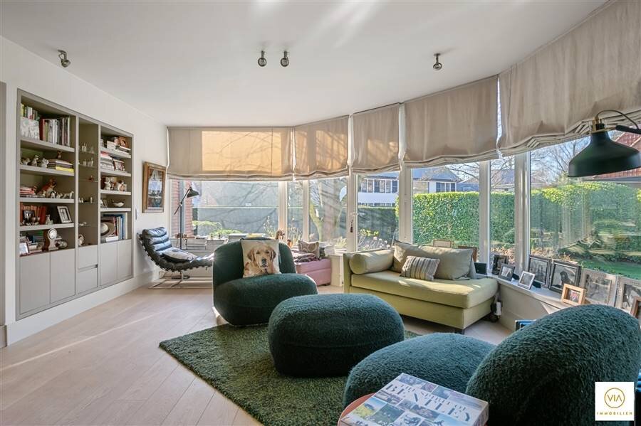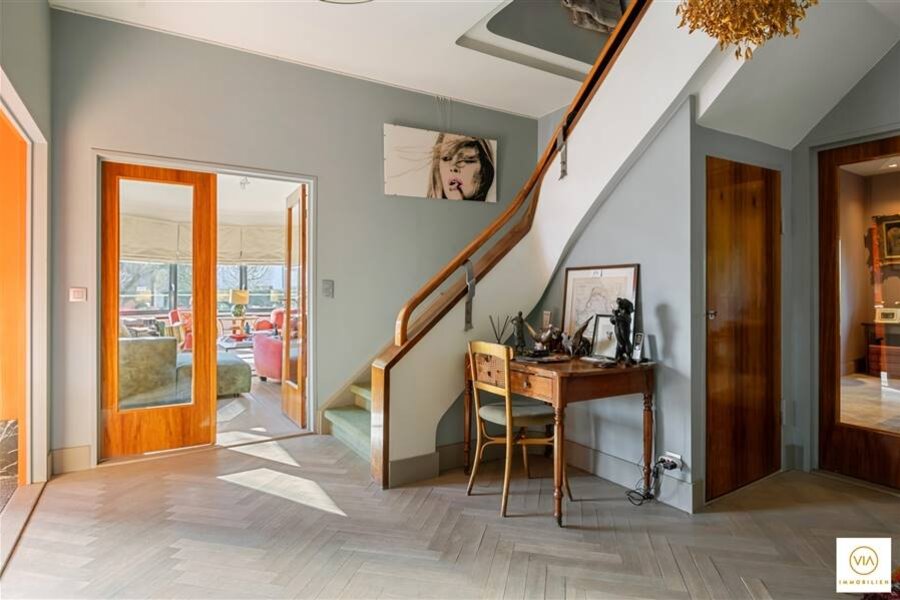 In het hart van Park Den Brandt, vlakbij de invalswegen en het centrum van Antwerpen, treffen we deze sublieme & instapklare Art Déco villa met ca 500m² bew. opp. In 2012 werd de woning met veel zorg stijlvol gerenoveerd met behoud van de mooie elementen met de charme van weleer. De stijlvolle inkomhal met mooie trappenpartij verleent u enerzijds toegang naar een eerste leefgedeelte aan de voorzijde en anderzijds naar de eetkamer met zicht op de tuin en doorgang naar een extra woonruimte met gashaard + acces naar de zonnige tuin. De hele woning is doordrongen van daglicht. De ingerichte eet-en leefkeuken met bijkeuken (+wasplaats) geeft eveneens uit op de tuin en terras. Op de eerste verdieping zijn vier volwaardige & stijvlolle slaapkamers en 2 badkamers met elkaar verbonden via een centrale hal. Een vaste trap brengt ons naar een extra polyvalente ruimte met 5de slaapkamer en nog een extra doucheruimte. De kelderverdieping wordt thans als showroom gebruikt en kan voor verschillende doeleinden gebruikt worden. Carport achteraan. Zeer stijlvolle en volledig gerenoveerde villa met hedendaagse inrichting en comfortniveau. De totaalrenovatie omvat alle vloeren (parket), badkamers, keuken, ramen, elektriciteitsinstallatie en loodgieterij + nazicht en isolatie van de daken + gevels. Prima gelegen in de residentiële parkomgeving naast de voormalige tennisclub "Den Brandt". Snel beschikbaar!