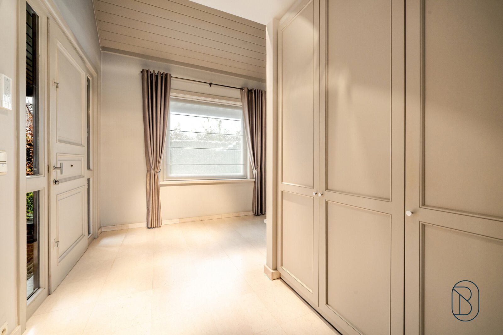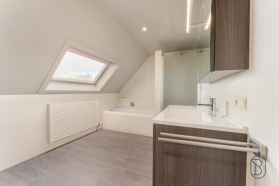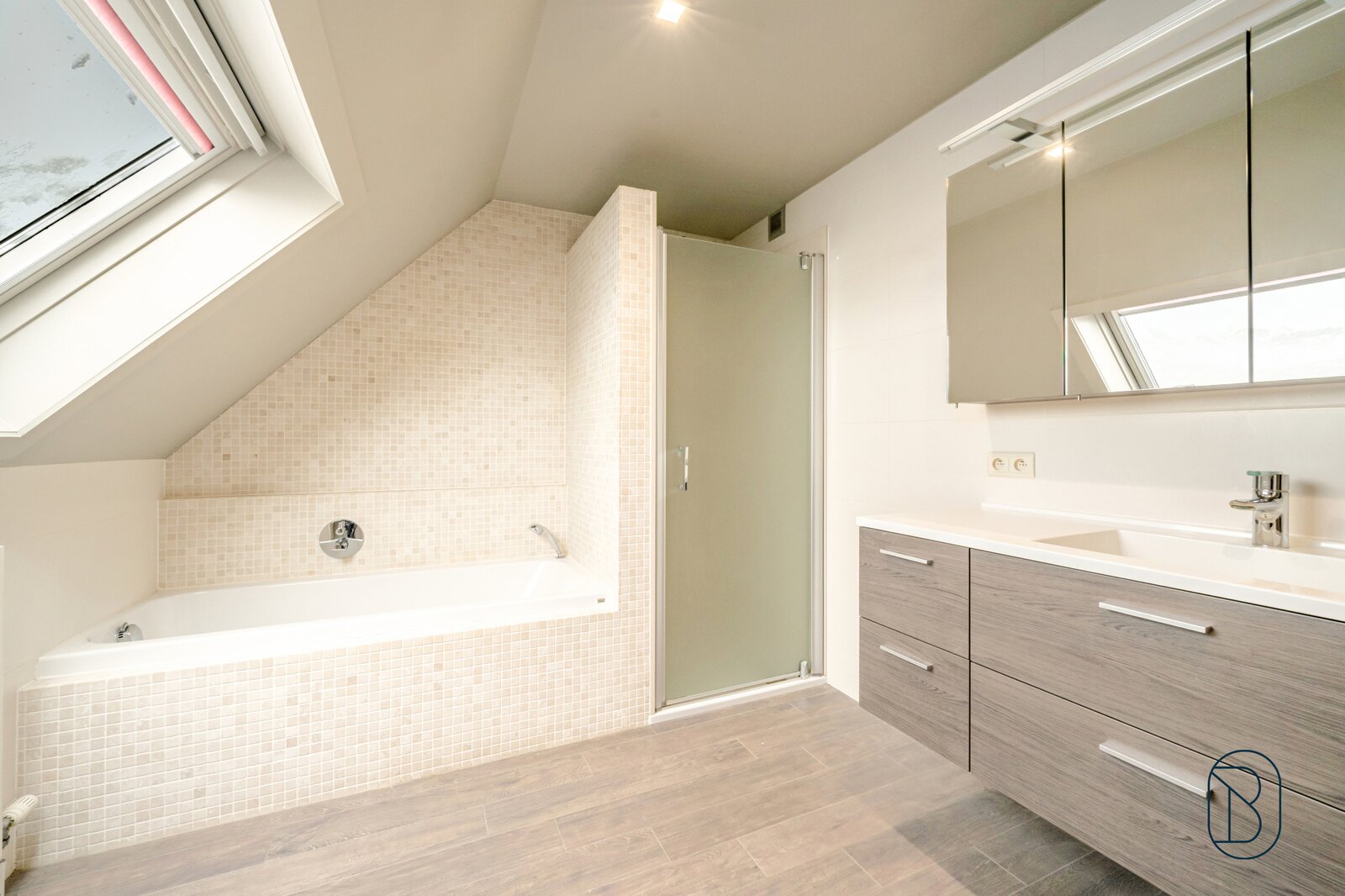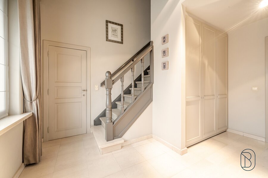 Boven zijn er vier ruime slaapkamers, waarvan één met dressing, een stijlvolle badkamer en een extra apart toilet.