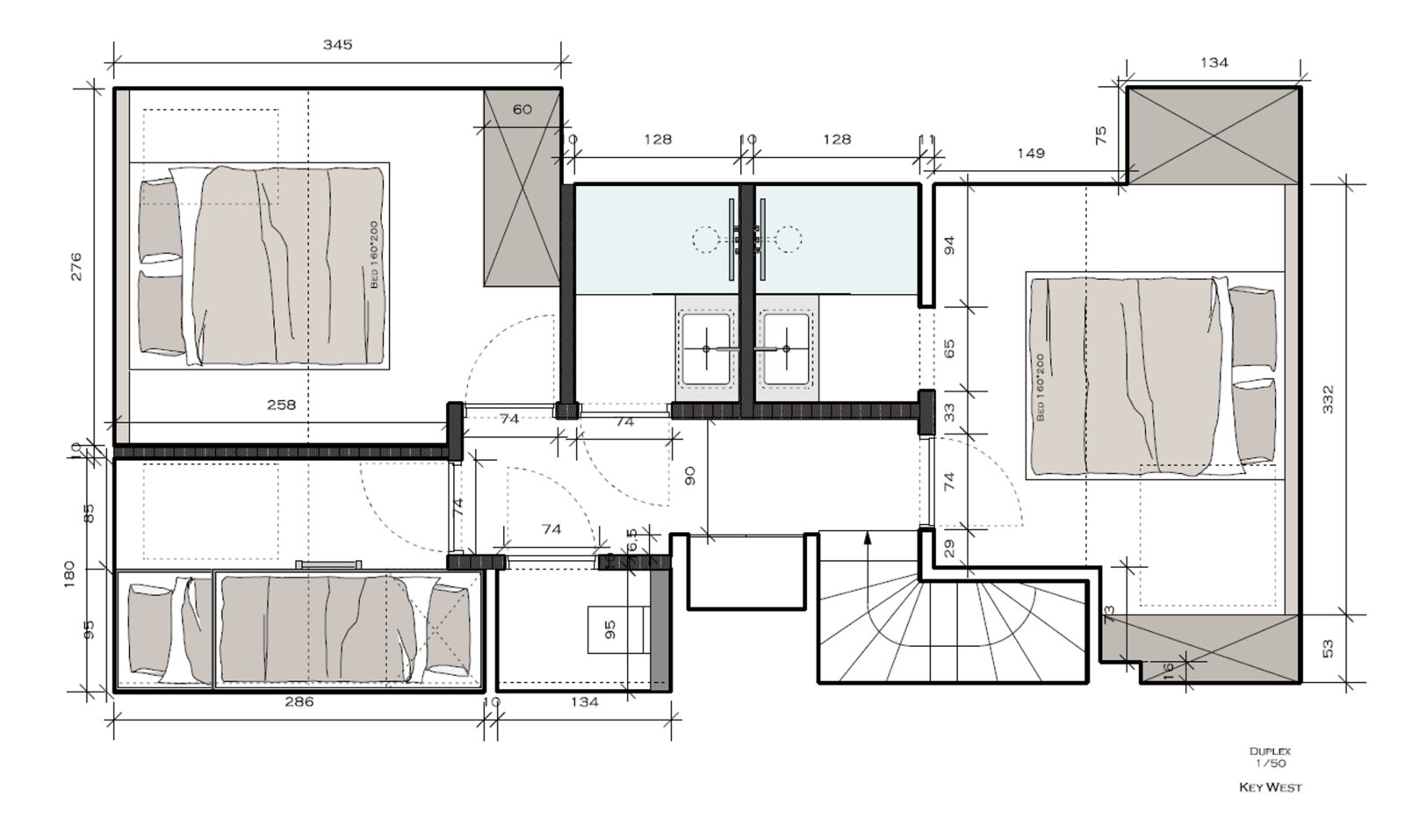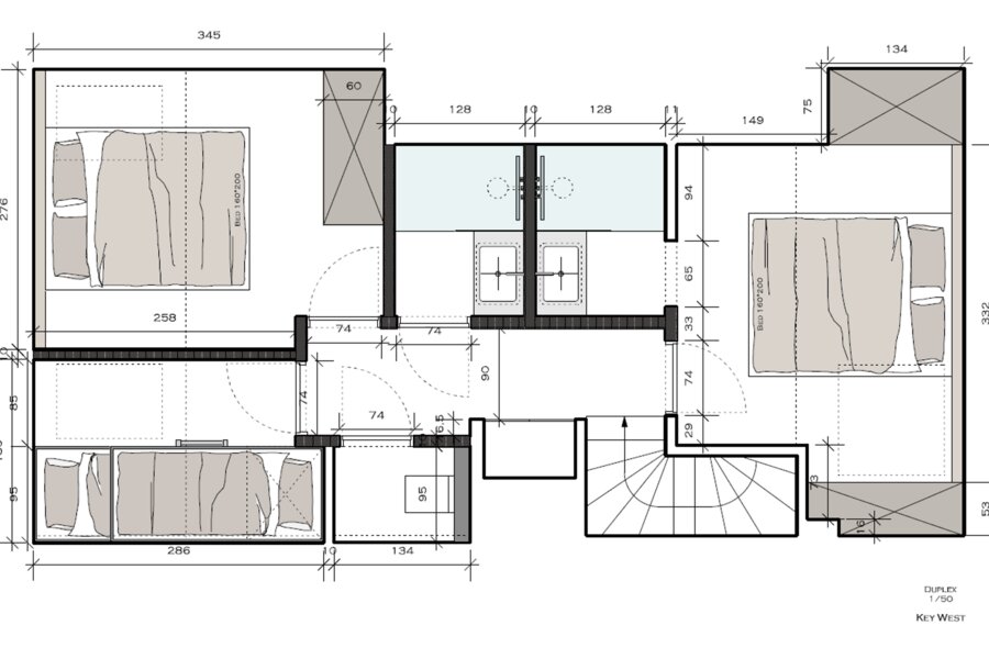 Zeer lichtrijke woonkamer met eetruimte beide met parketvloer uitgevend op het westgericht terras. Ook is er een gastentoilet aanwezig. Als u de trap naar de bovenverdieping neemt is deze voorzien van de masterbedroom, een ruime slaapkamer voorzien voor een tweepersoonsbed + kleerkasten op maat en ensuite badkamer met inloopdouche. Nog een extra douchekamer op de gang, een apart toilet en bergkast. In de tweede slaapkamer is er ook plaats voor tweepersoonsbed + meerdere ingebouwde kleerkasten. Daarnaast is hier ook nog een derde slaapkamer met ingebouwd stapelbed en opbergkast. Alle slaapkamers zijn voorzien van ingebouwde kleer- en nachtkasten.