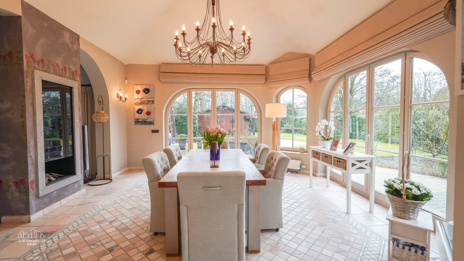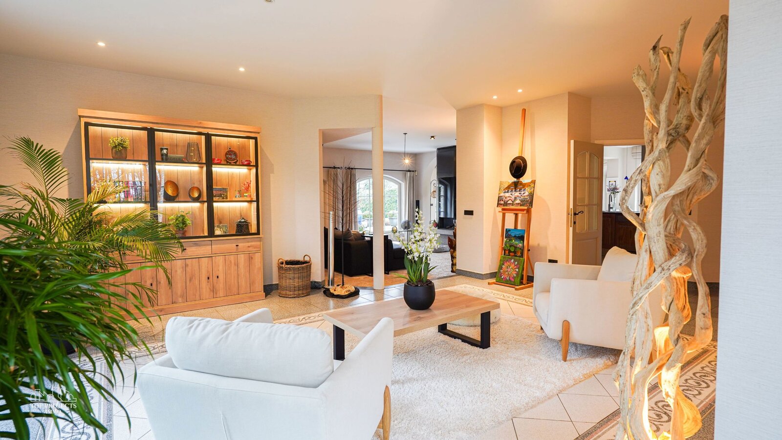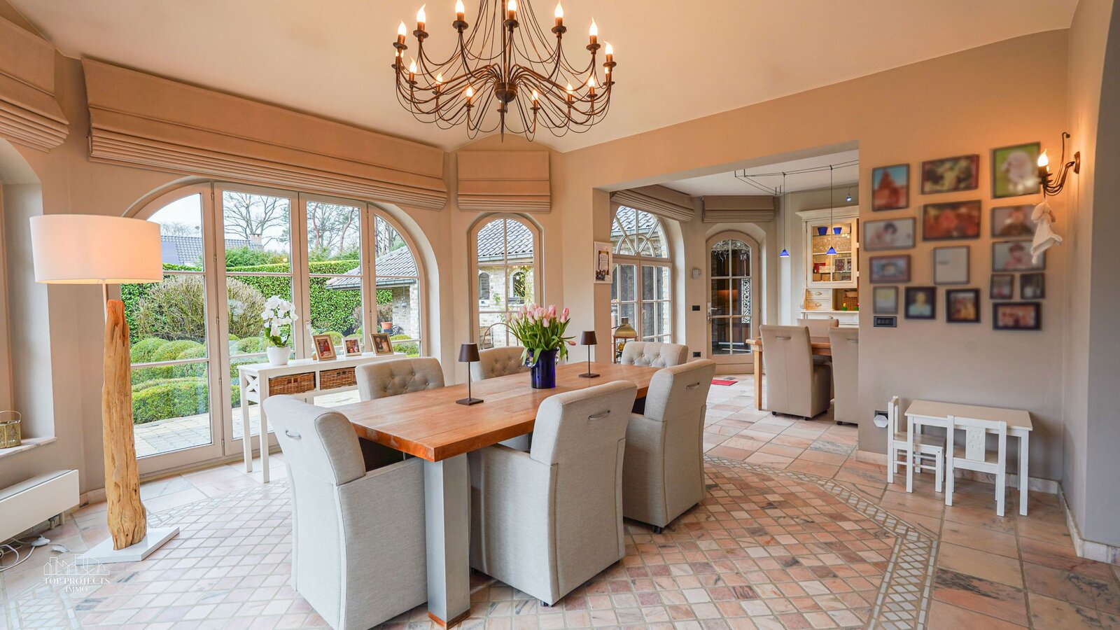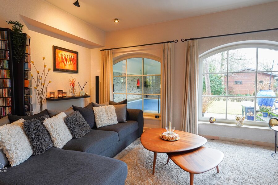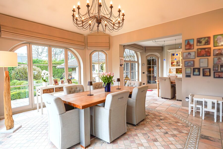 De woning charmeert door haar tijdloze uitstraling en de vloeiende overgang tussen de verschillende ruimtes.