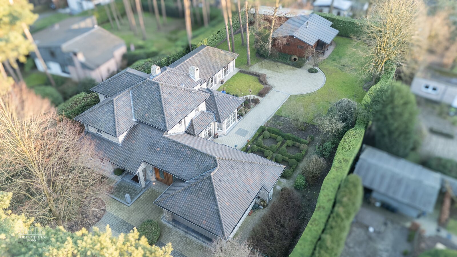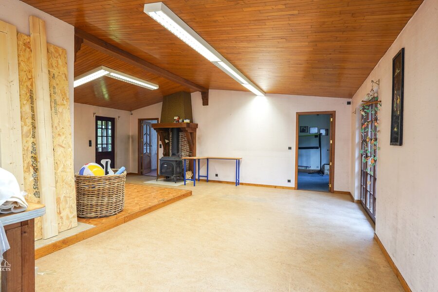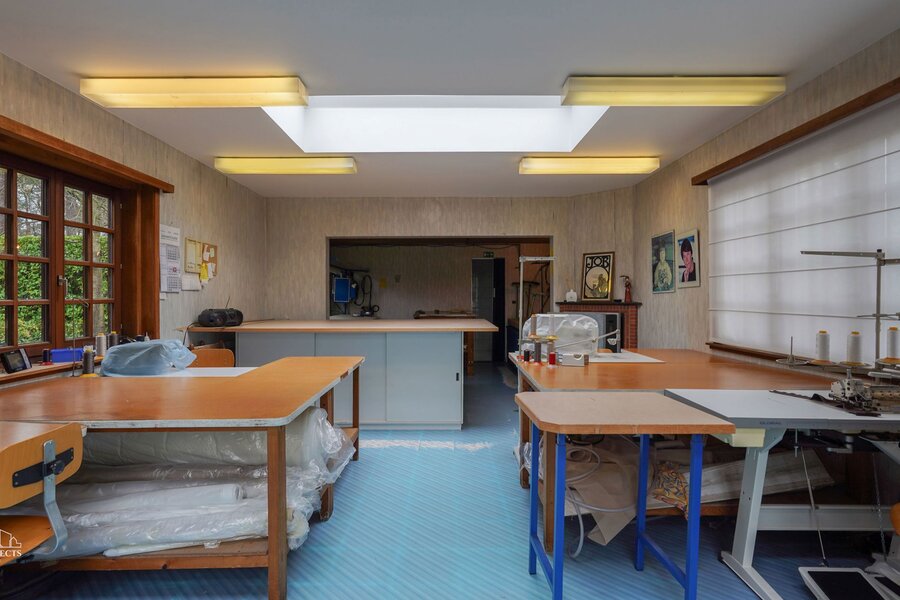 In de tuin bevindt zich bovendien een ruim polyvalent bijgebouw van 135 m² (voorheen gebruikt als naaiatelier), ideaal als hobbyruimte, praktijkruimte, mancave, atelier of gewoon als bijkomende opslagruimte.