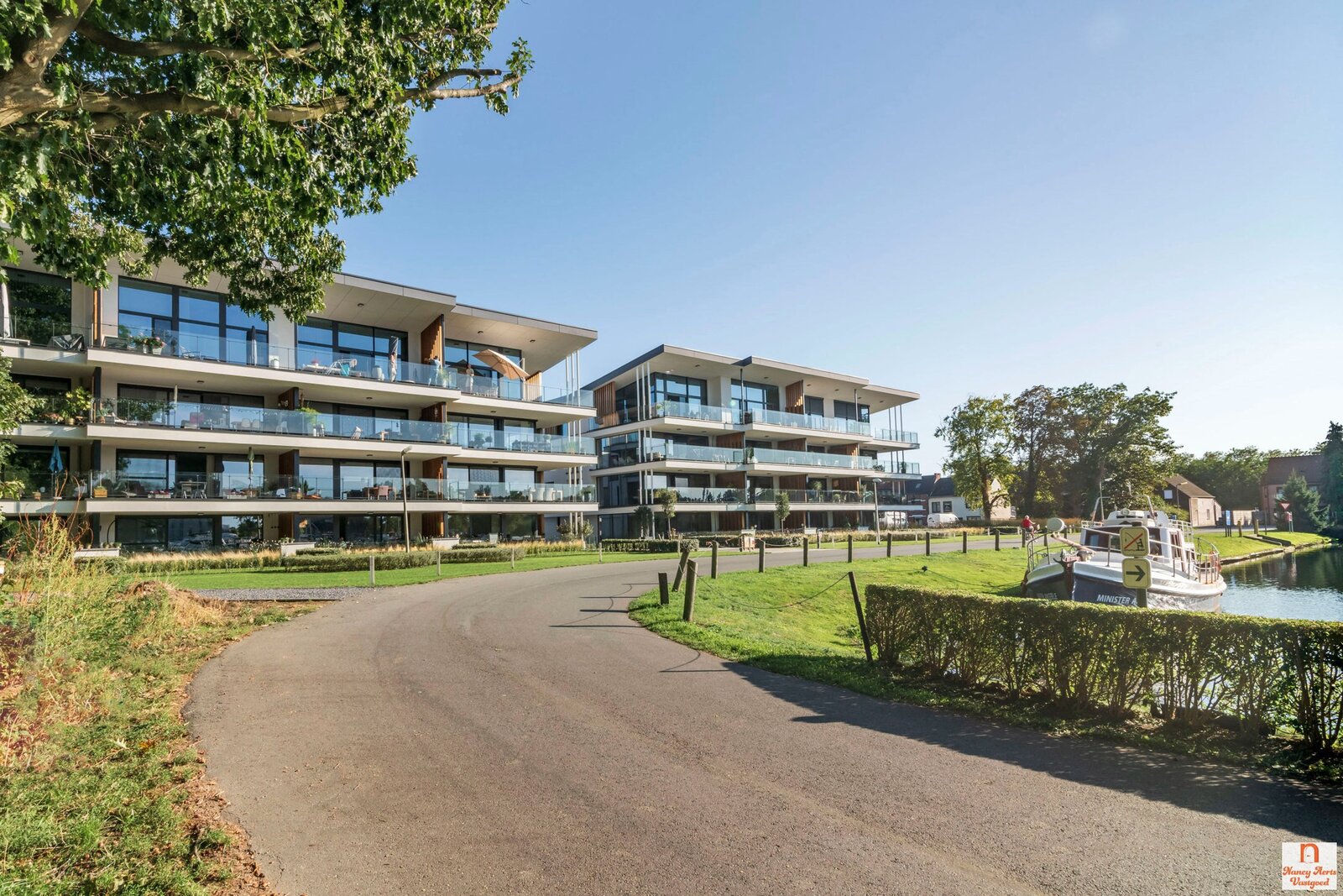 Het appartementencomplex werd in 2024 gebouwd en ademt moderniteit en kwaliteit. Het geheel is fraai aangelegd, voorzien van een lift en er is voldoende parkeergelegenheid voor bezoekers. De architectuur straalt rust en klasse uit, met strakke lijnen en een doordachte indeling die een exclusieve sfeer oproepen. Hier woon je in een omgeving die niet alleen mooi is om te zien, maar ook aangenaam aanvoelt door de zorg waarmee alles werd ontworpen. De ligging is ideaal: rustig met zicht op het water en toch slechts een kilometer verwijderd van het levendige centrum van Leopoldsburg, met winkels, horeca, scholen en het station binnen handbereik. Ook een supermarkt ligt letterlijk om de hoek.