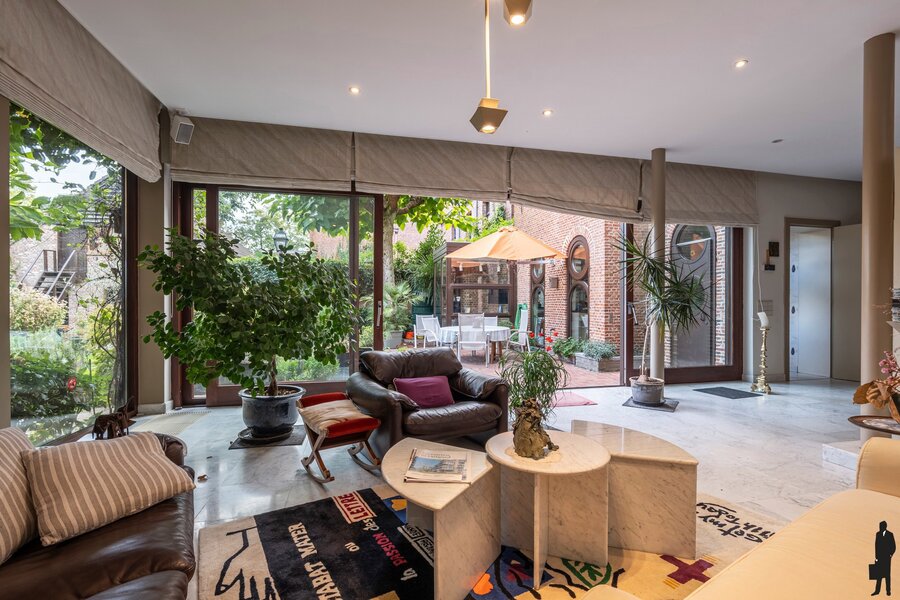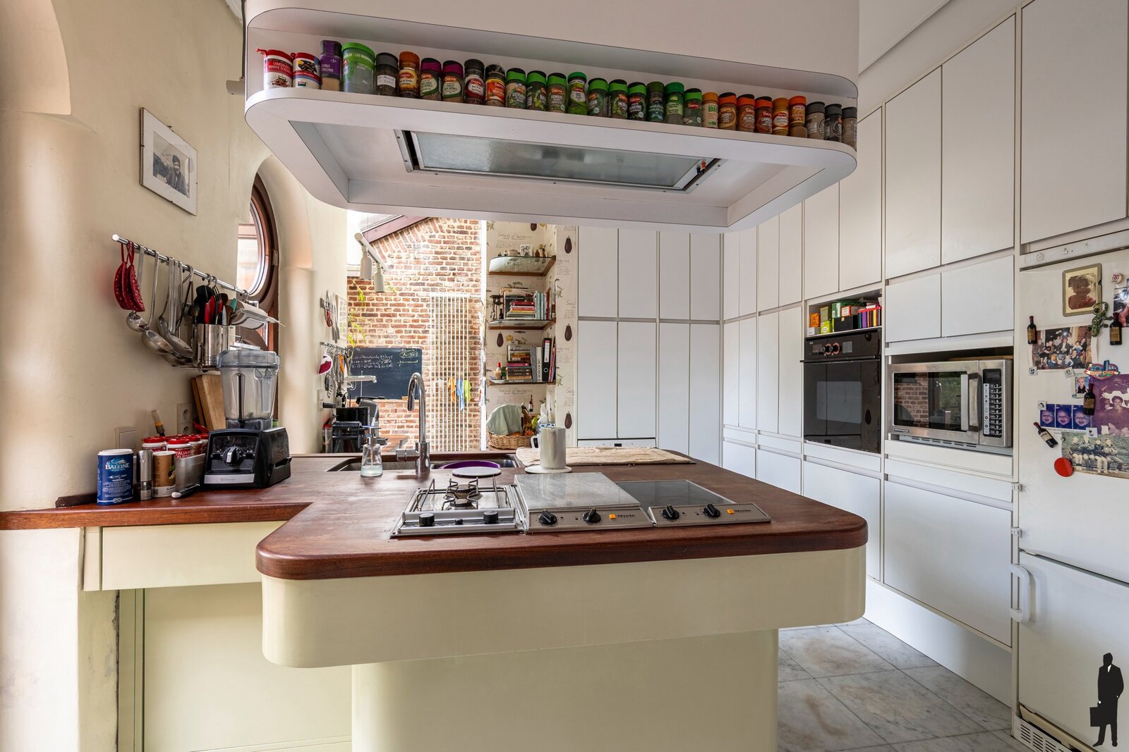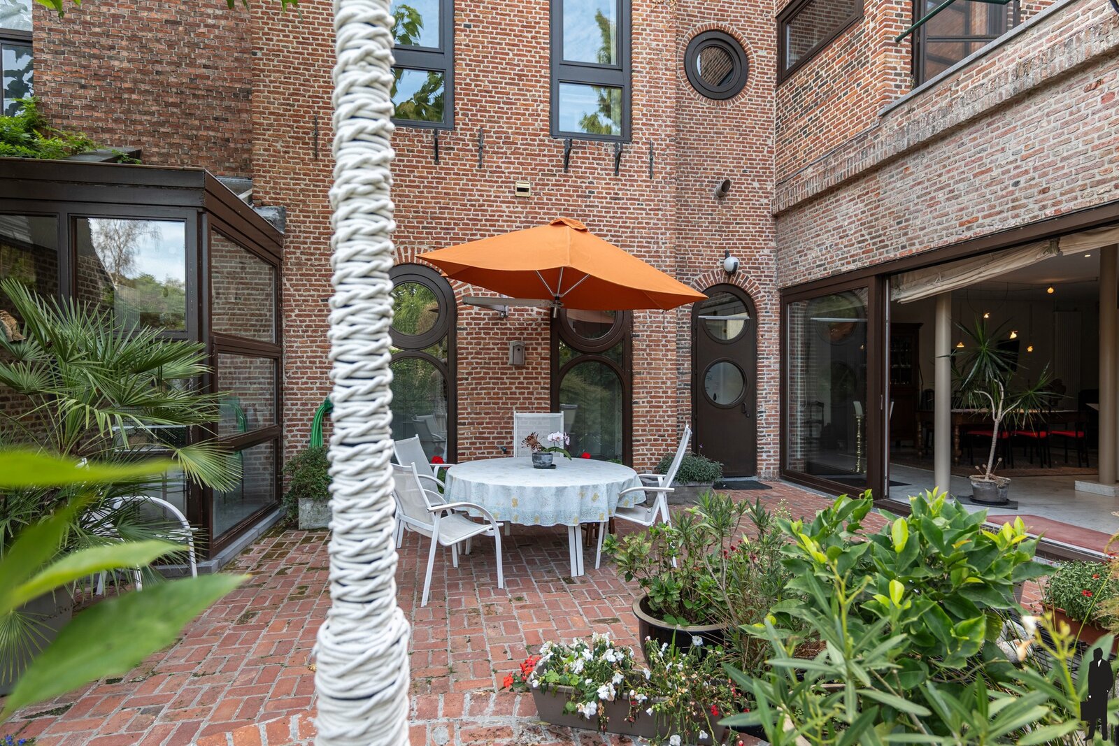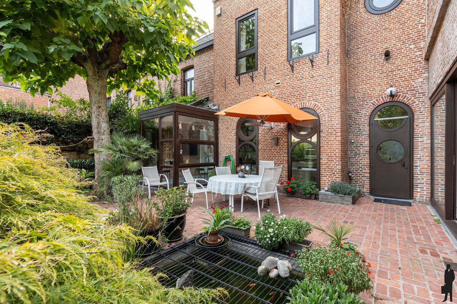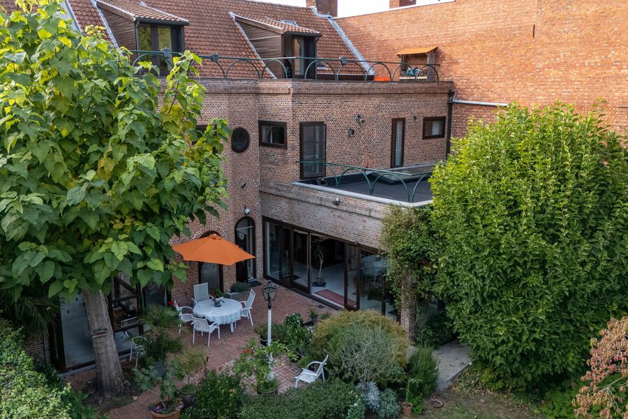 Buitengebeuren: De woning beschikt over een schitterende groene stadstuin met vijvertje en hoge volwassen bomen, die een oase van rust creëren midden in de stad. In de tuin bevindt zich een aangelegd terras en een bijgebouw/werkhuis met bovenverdieping, dat zich uitstekend leent als speelzolder of polyvalente ruimte. De tuin heeft een ideale zuidoostelijke oriëntatie.