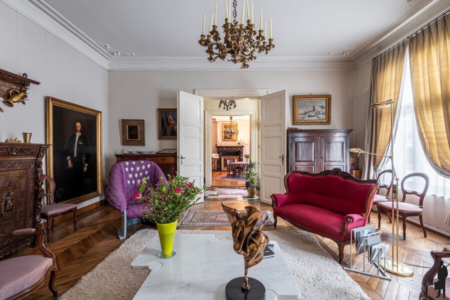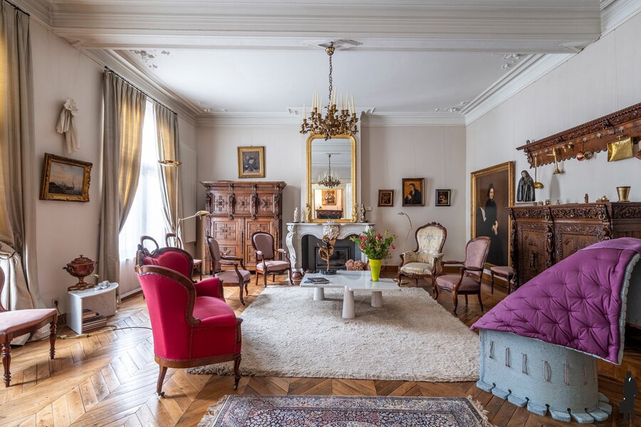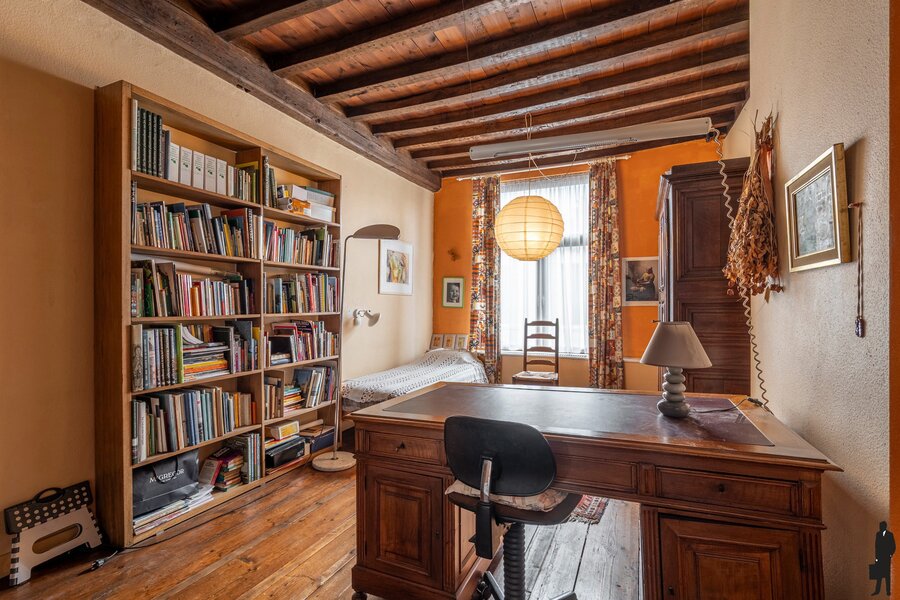 Statig herenhuis nabij de Grote Markt met een majestueuze uitstraling en tal van bewaarde 19de-eeuwse elementen, zoals een marmeren dambordvloer, een houten Engelse trap, sierlijke schouwen, plankenvloeren en een balkenzoldering. De woning biedt royale woon- en werkvertrekken, een gezellige stadstuin, een wijnkelder en een dubbele garage. Er zijn momenteel zes slaapkamers (met mogelijkheid tot zeven à acht), twee badkamers en een ingerichte zolderruimte met dakterras. Het eigendom bezit een hoge historische en architecturale waarde en vormt een beeldbepalend element in het straatbeeld.
