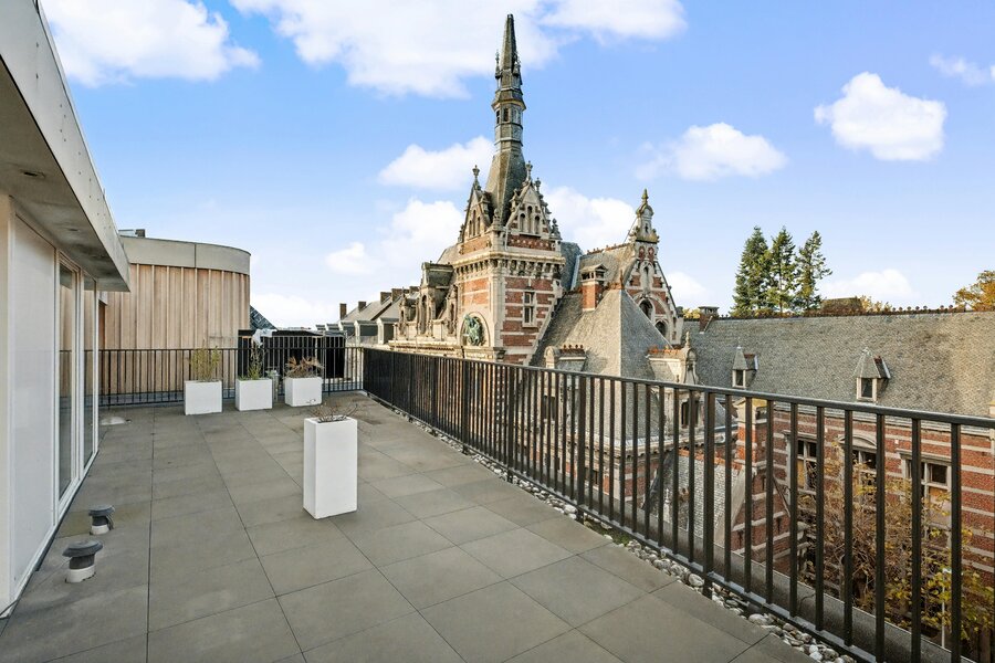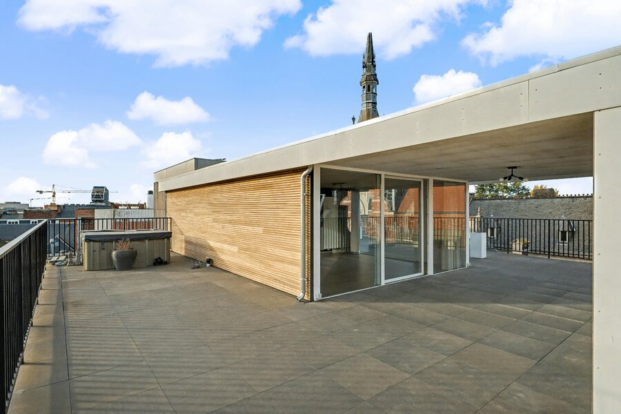 Kers op de taart is het zuidwestelijk georiënteerde terras van maar liefst 96 m². Hier geniet je van de zon van ’s middags tot zonsondergang. De ideale setting voor zomerse barbecues met vrienden of rustige avonden met een glas wijn en een prachtig uitzicht over de stad.