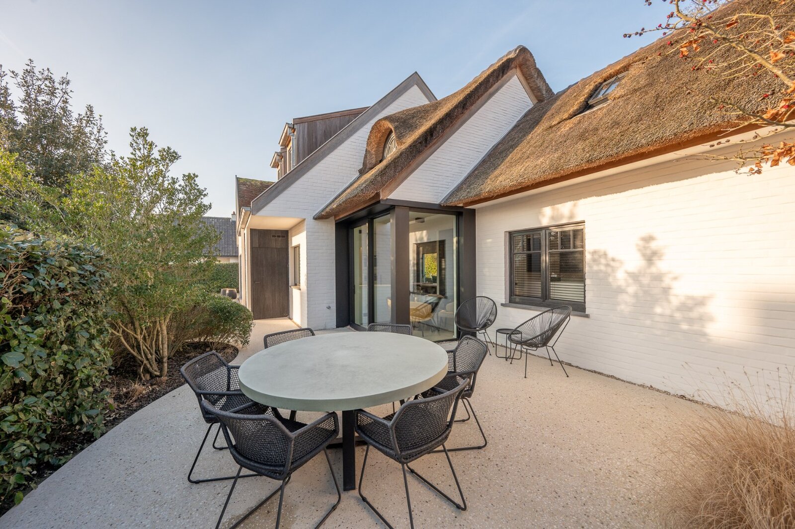 Dit eigendom beschikt over een unieke buitenbeleving en geniet de volledige dag van de zon, dankzij de grote zonneterrassen en de moderne buitenlounge.