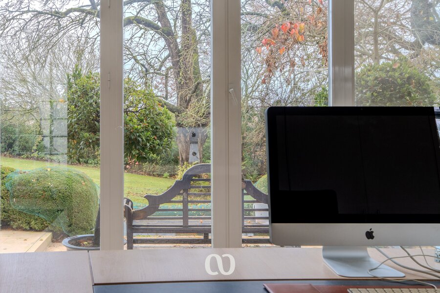 De leefruimtes bevinden zich voornamelijk aan de tuinzijde en zijn erop gericht om elk moment van de dag licht binnen te halen. Geen klassieke indeling, maar een opeenvolging van open en semi-open ruimtes die elk een eigen sfeer uitademen. Grote glaspartijen zorgen ervoor dat je voortdurend in contact blijft met het buitenleven.