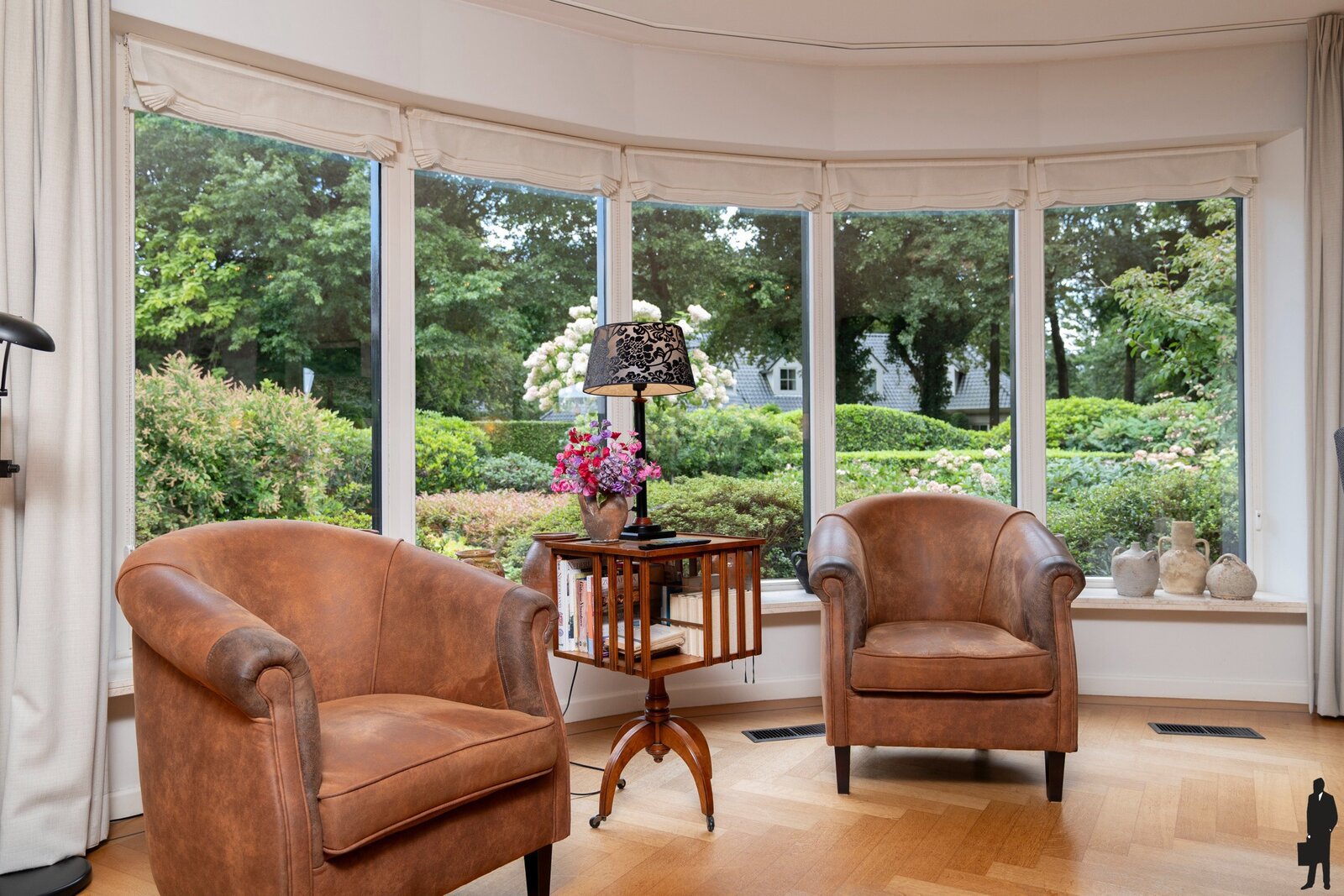 De gehele benedenverdieping is voorzien van een prachtige, massief eiken parketvloer in visgraatpatroon.