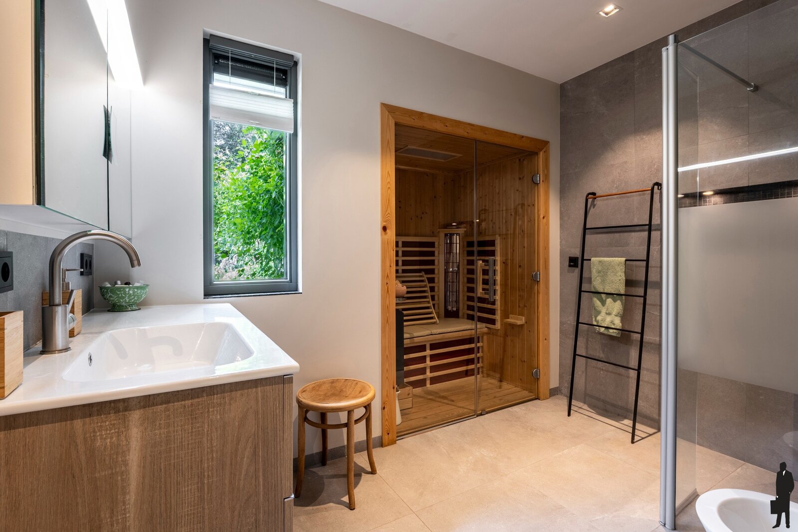 Op het gelijkvloers bevinden zich drie ruime slaapkamers en twee recent gerenoveerde badkamers. De badkamer aan de master bedroom is voorzien van een infraroodsauna.