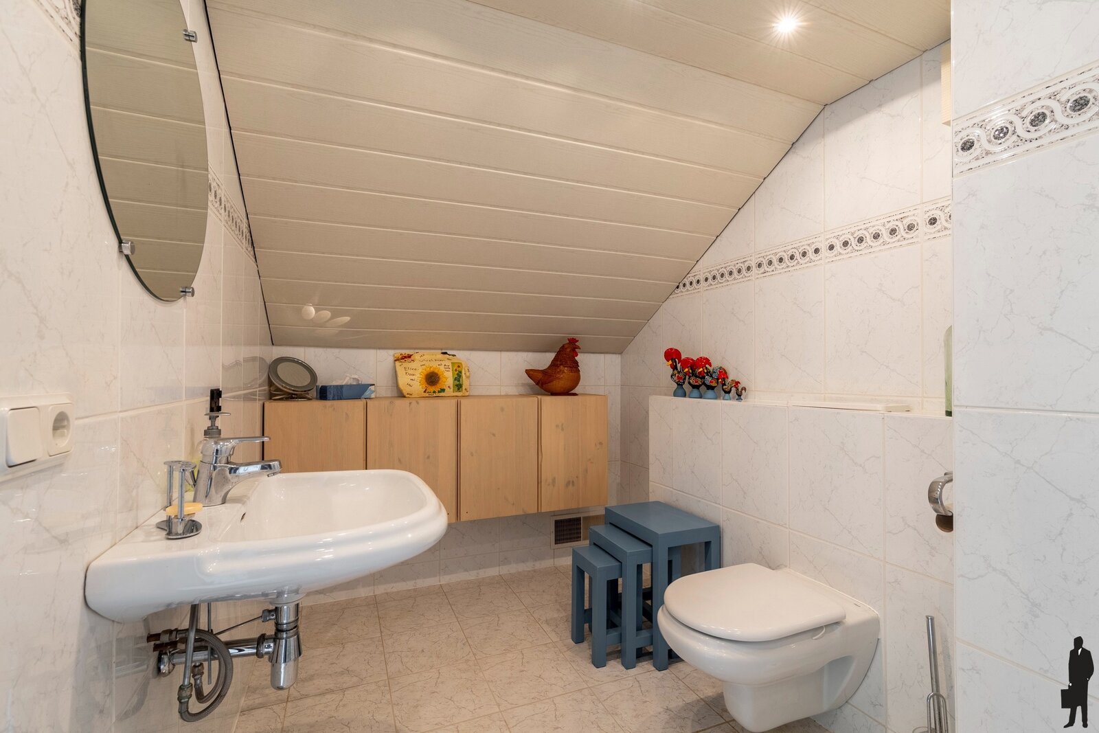De bovenverdieping is deels ingericht met een slaapkamer en badkamer – ideaal voor logés of opgroeiende tieners.