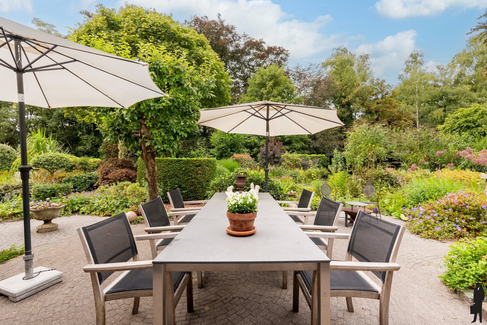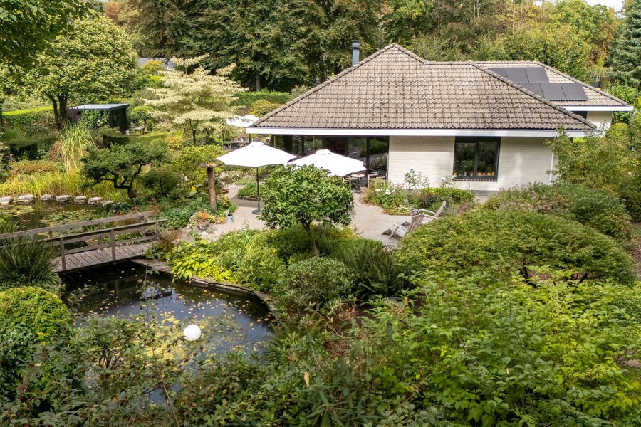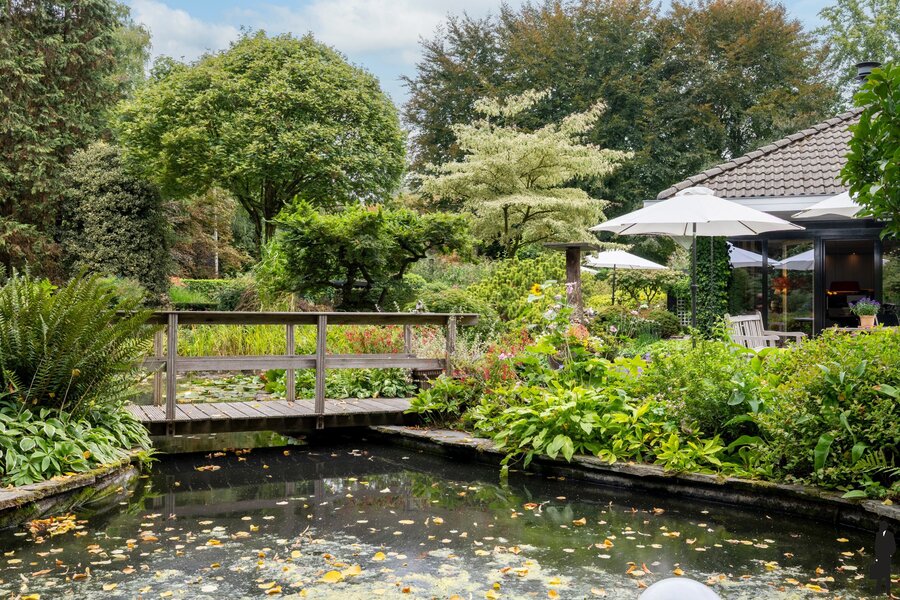 De parkachtige tuin, georiënteerd op het zuidwesten, ademt rust en harmonie. Met een sierlijke vijver, bloemen, vogels en vlinders, is het dagelijks genieten in je eigen tuin. Een unieke kans voor wie houdt van rustig en bestendig wonen in directe verbinding met de natuur. In de tuin bevinden zich verder een ruim houten tuinhuis en een carport met 2e tuinhuis. Bovendien ligt deze woning op een kleine 10 minuten van de A2 naar Eindhoven en E34 naar Antwerpen.