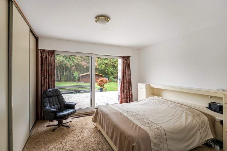 We betreden de woning via de centrale inkomhal met vestiaire en gastentoilet. Via deze ruimte heeft u enerzijds toegang tot de woonkamer met aparte zithoek met gashaard, gezellige erker en aansluitende eetkamer. Anderzijds kunnen we via deze weg de vernieuwde keuken betreden die volledig is geïnstalleerd met koelkast, vaatwasmachine, diepvriezer, inductiekookplaat, combi oven en oven. Deze geeft uit op de eetkamer. De masterbedroom met eigen badkamer is voorzien op de gelijkvloerse verdieping zodat de woning ook ideaal geschikt is voor kopers op leeftijd, mindervaliden of co-housing.