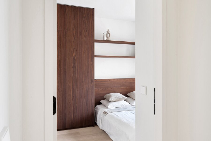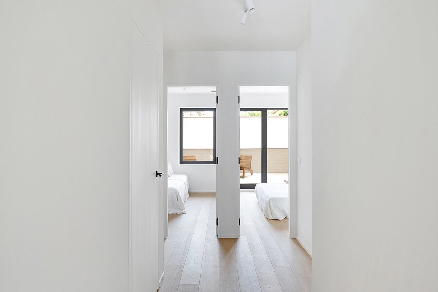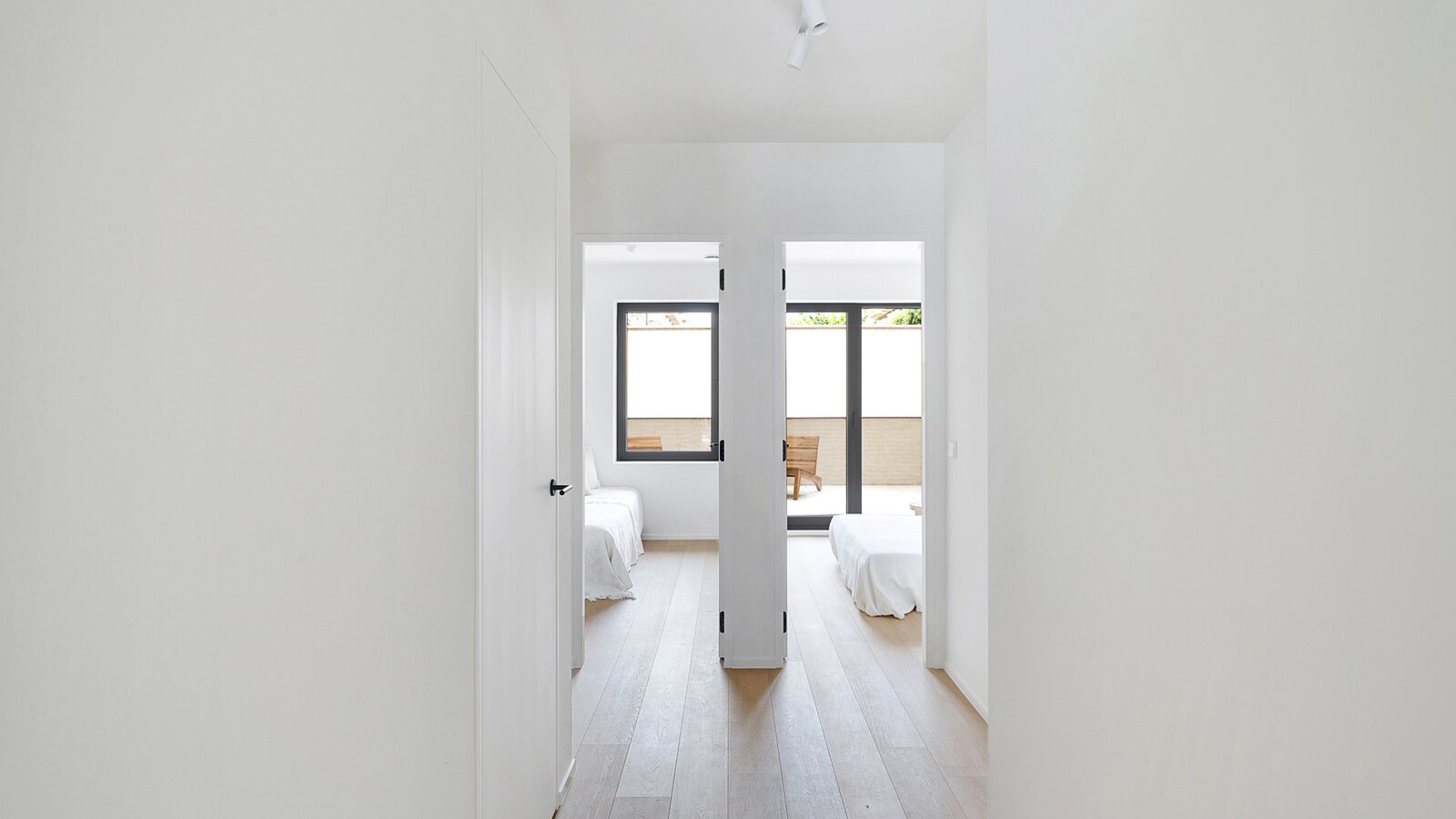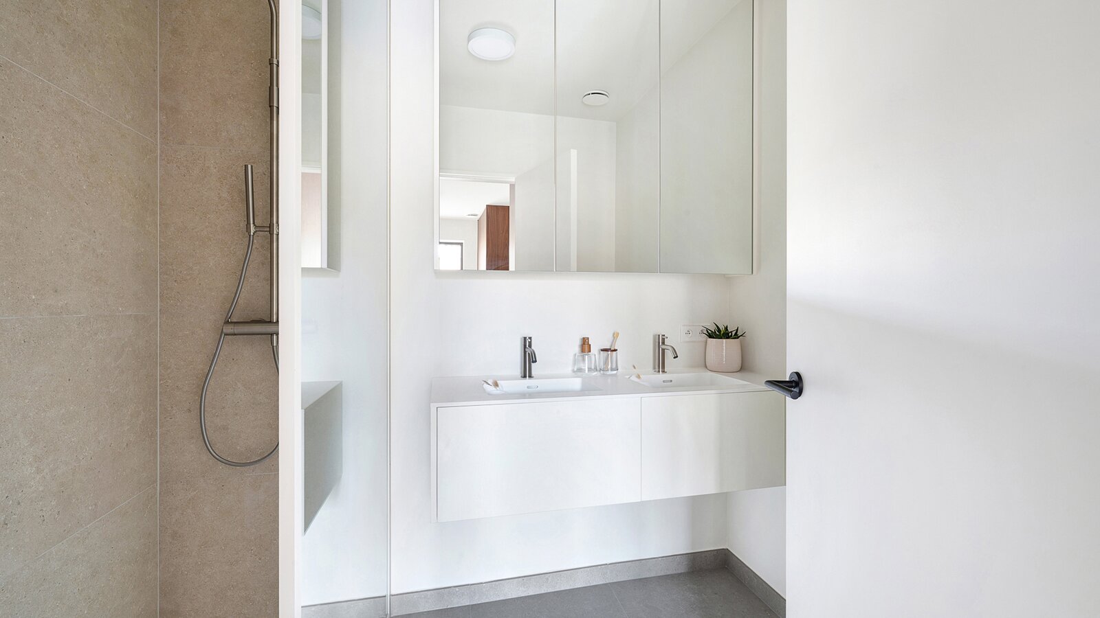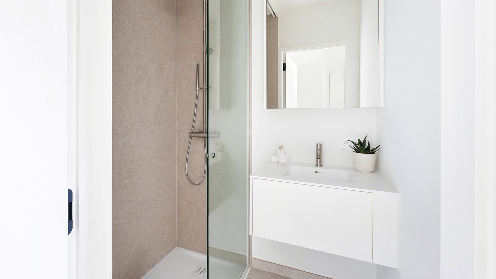 Achteraan bevinden zich drie comfortabele slaapkamers. De master bedroom beschikt over ingemaakte kasten en een ensuite badkamer. Daarnaast zijn er nog twee slaapkamers en een aparte douchekamer, wat het appartement uitermate geschikt maakt voor gezinnen of gasten.