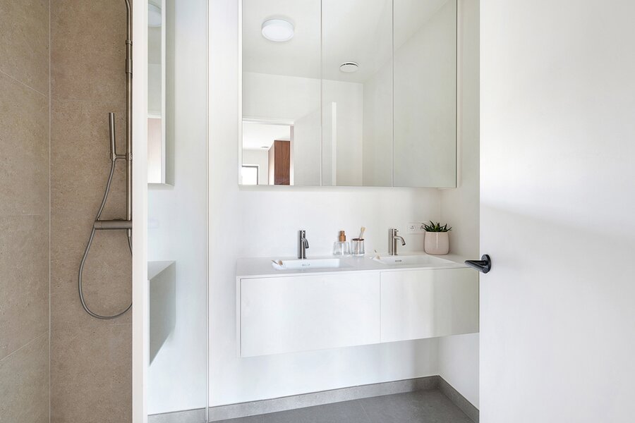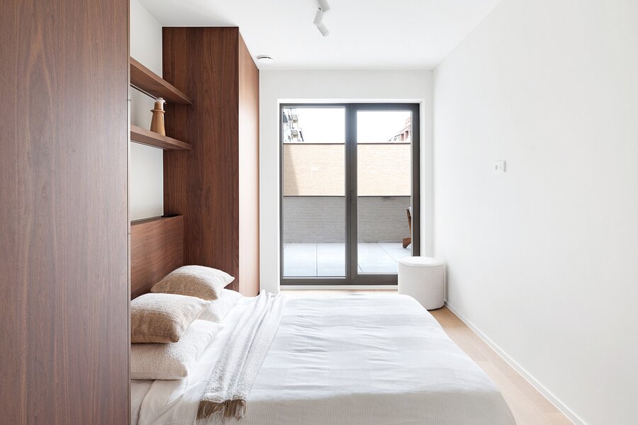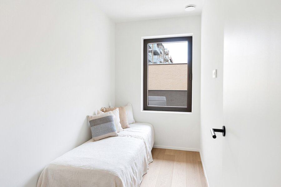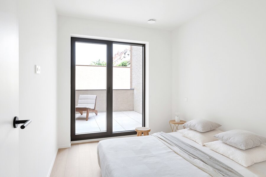 Extra troeven zijn de praktische privatieve berging, de gemeenschappelijke fietsenruimte én een bijkomend terras aan de achterzijde.