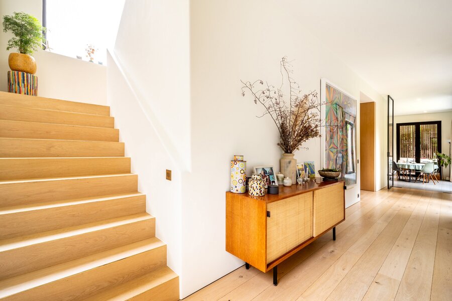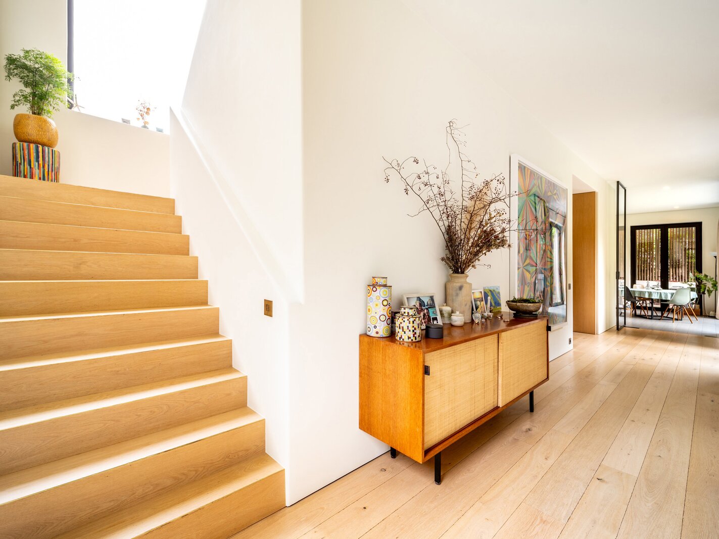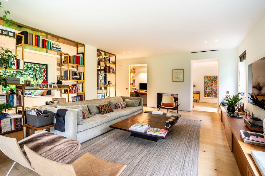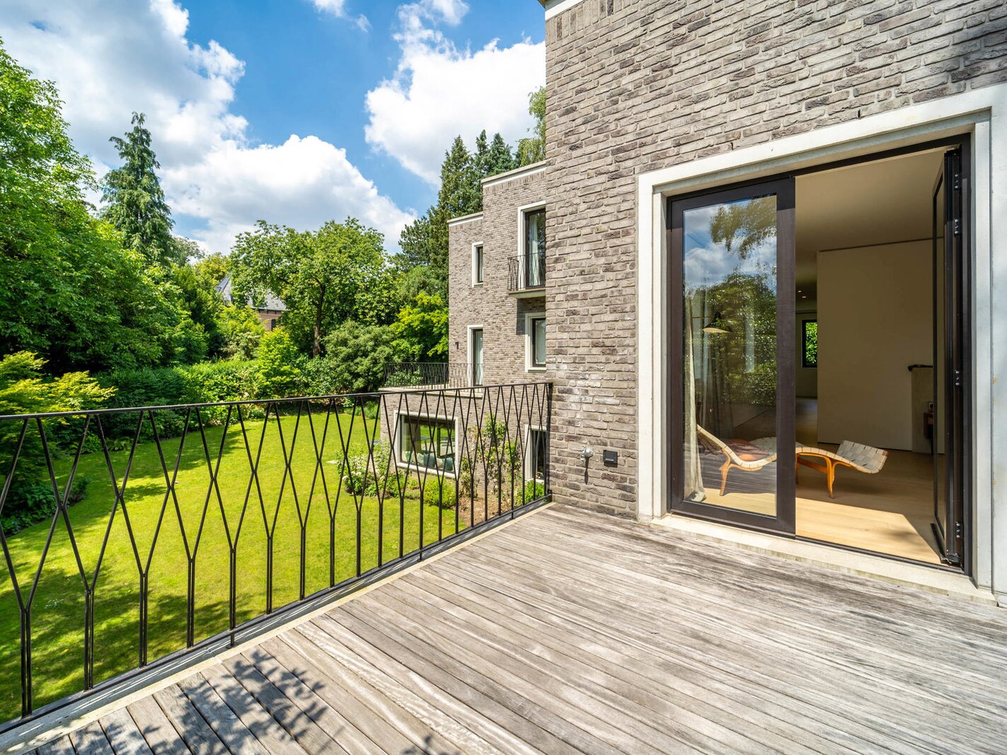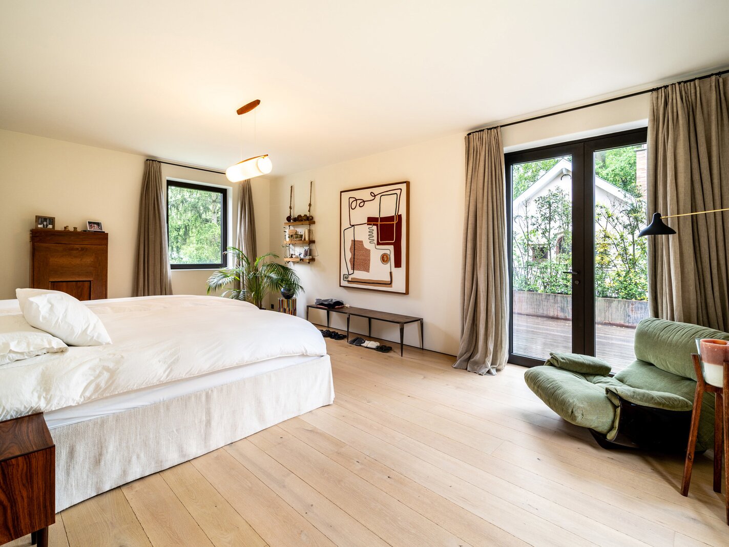 De woning, ontworpen door een Zwitsers architectenbureau, komt uit op een grote inkomhal met geïntegreerde vestiaire en gastentoilet en leidt naar de eetkamer en de dubbele woonkamer met een oppervlakte van ± 70 m² met geïntegreerde bibliotheek en open haard met uitzicht op een tuin ontworpen door architect Eric Dhondt. Een keuken met een oppervlakte van ± 28 m² volledig uitgerust met Boretti fornuis, kookeiland en ontbijthoek geeft toegang tot het overdekte terras. Op de eerste verdieping de hoofdslaapkamer van ± 46 m² met kleedkamer, badkamer, Japans toilet en terras en twee andere slaapkamers van ± 15 en 18 m² met geïntegreerde kleedkamer, privébadkamer en terras. Op de tweede verdieping, twee slaapkamers van ± 18 m² met kleedkamer en badkamer, een familiekamer uitgebreid met een terras van ± 18 m². Een studio met een zesde slaapkamer en douche, een ingerichte wasruimte en kelders.