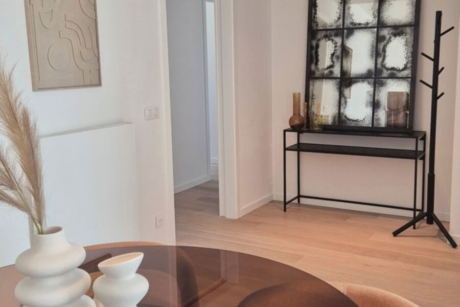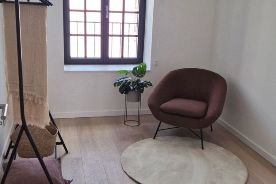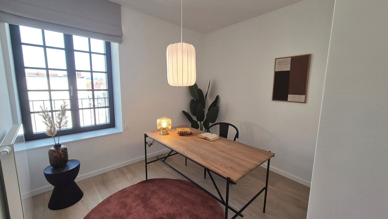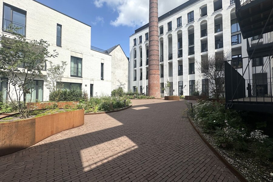 Het project "Chocolaterie Antoine" biedt u op de 4e verdieping, een prachtig and luchtig 3 slpk appartement met uitzicht op de mooie binnentuin. Zeker een van de meest originele flats van het project.