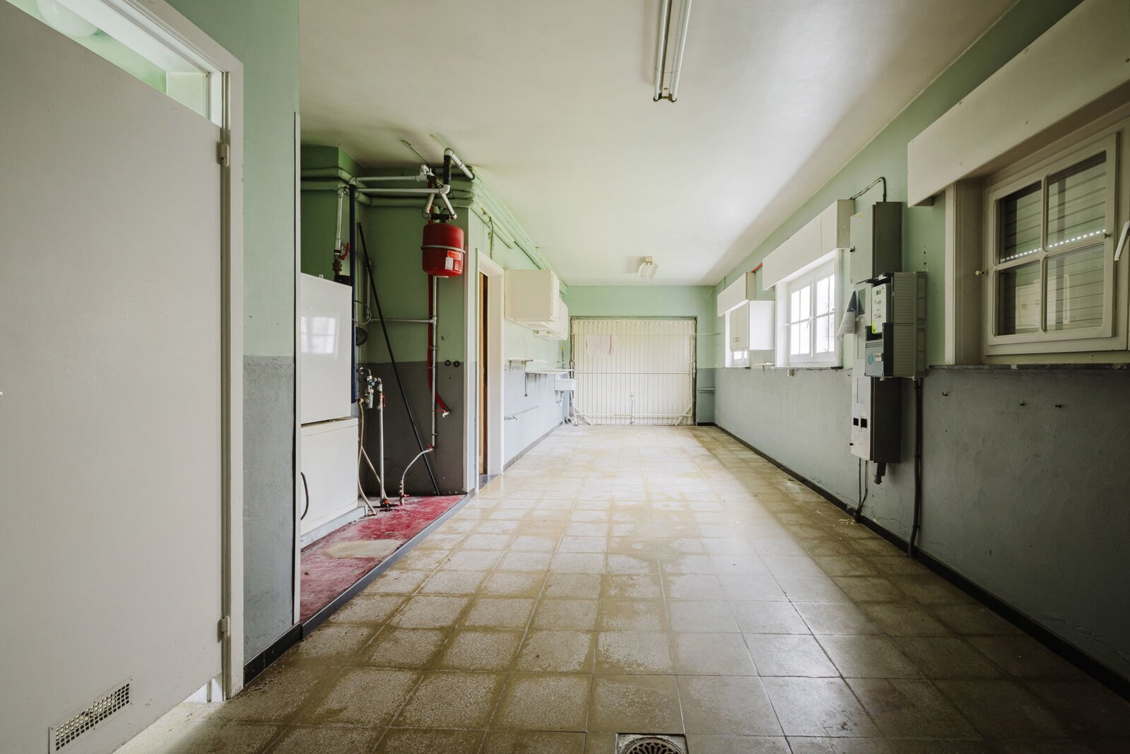 De woning beschikt over een dubbele garage en een ruime oprit met plaats voor meerdere wagens. Binnenkomen gebeurt via een royale inkomhal die toegang biedt tot de zeer ruime en lichtrijke leefruimte met zicht op de tuin. De keuken, bereikbaar via inkomhal en leefruimte, geniet eveneens van een groen uitzicht. Verder zijn er op het gelijkvloers twee toiletten, een koele berging. Vanuit de tuin hebt u een wijds zicht op natuur.