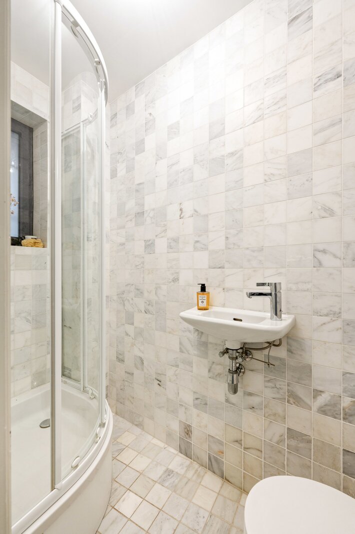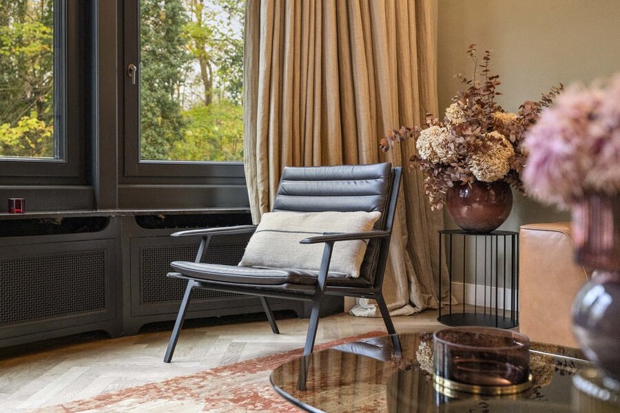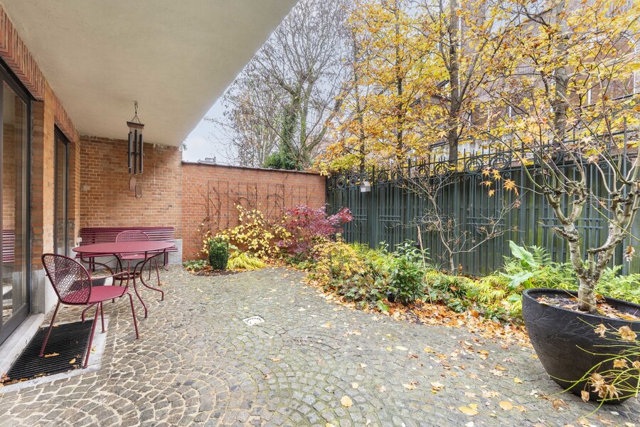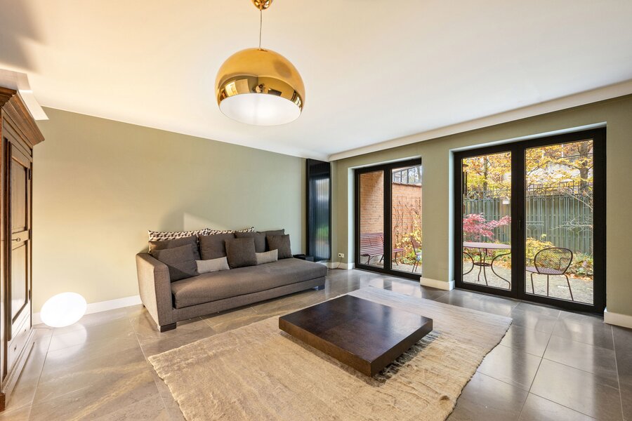 Op de eerste verdieping gaat licht en ruimte hand in hand. De leefruimte met houtkachel biedt een prachtig zicht op het Hertoghepark, terwijl de eetkamer aansluit op de volledig nieuwe Bulthaup-keuken, uitgerust met kwalitatieve Miele-toestellen. Vanuit de eetkamer hebt u toegang tot een aangenaam terras met zicht op groen. Een apart toilet en een subtiel ingewerkte technische ruimte vervolledigen deze verdieping.