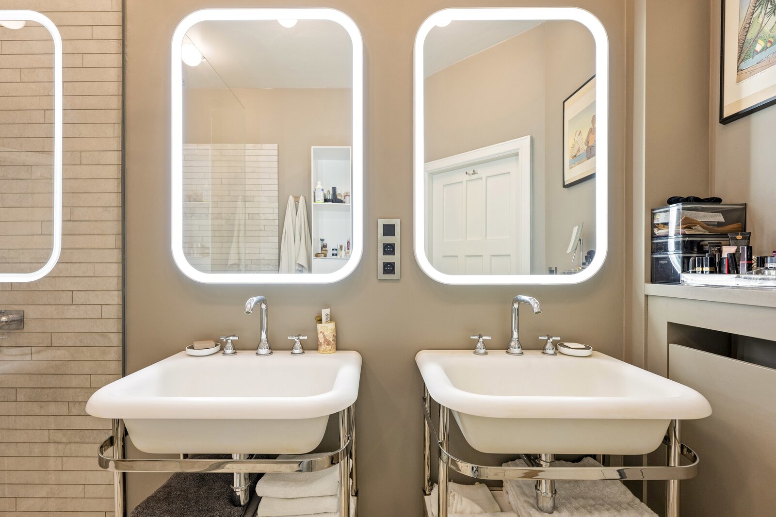 Op de derde verdieping bevinden zich nog twee ruime slaapkamers, beide uitgerust met airconditioning, en een badkamer met ligbad.