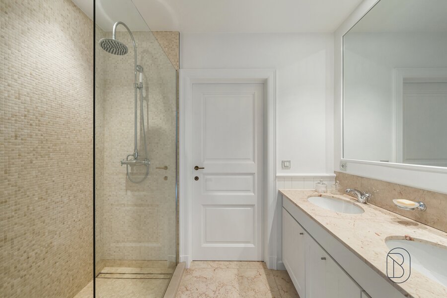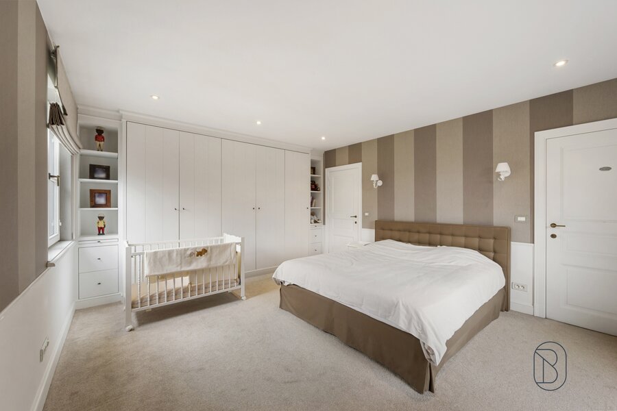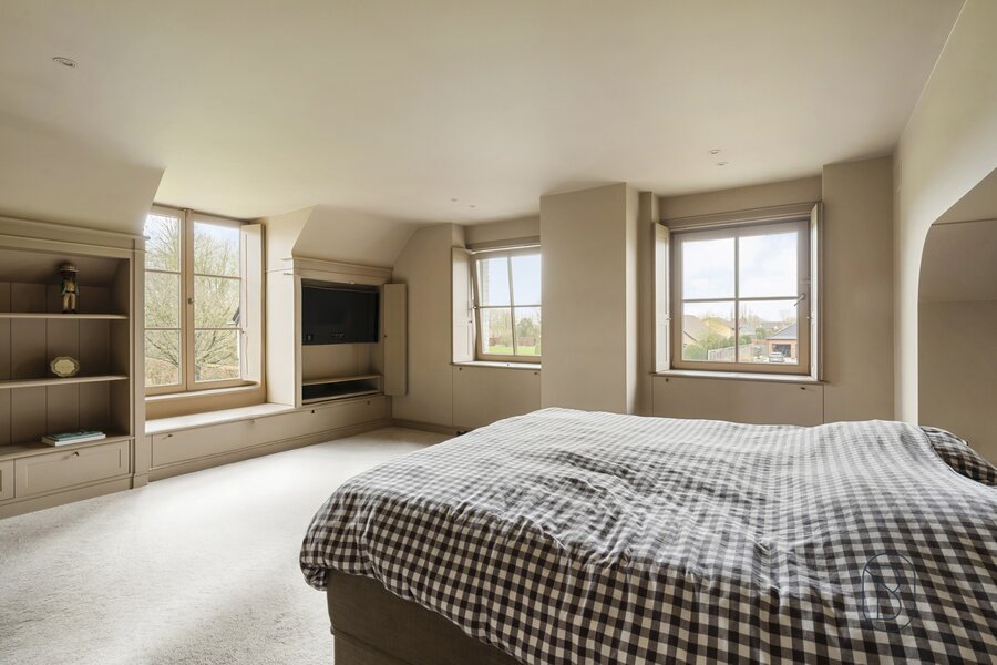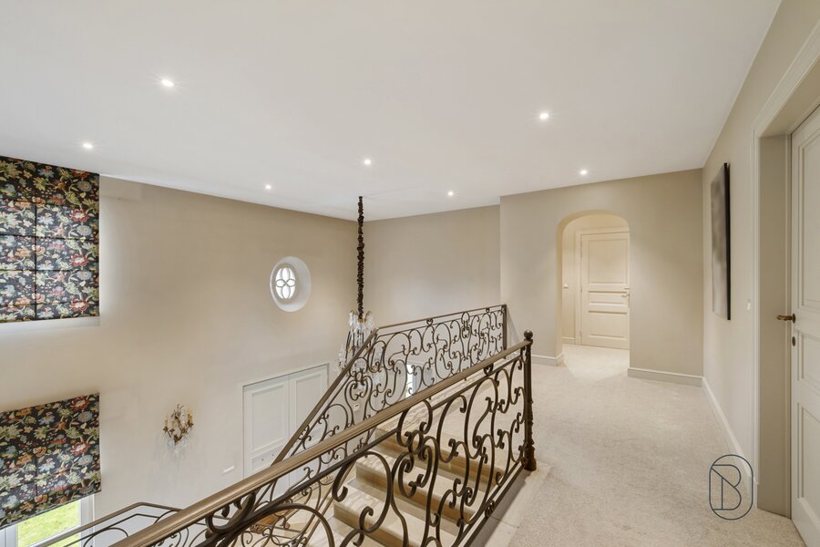 Op het 1ste verdiep: overloop, 4 grote slaapkamers, dressing, 3 badkamers (1 met ligbad en inloopdouche, en 2 douchekamers), en een extra zolderkamer/berging.