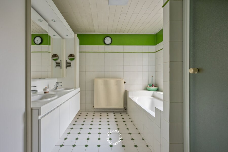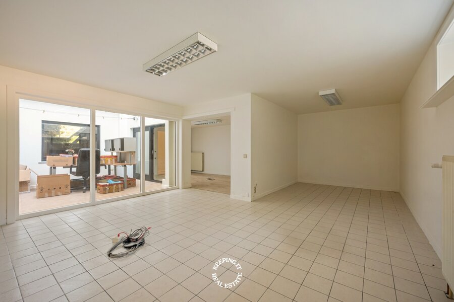 Het souterrain, dat tot op heden dienst deed als kantoorruimte, biedt tal van mogelijkheden. Deze verdieping leent zich perfect voor een praktijkruimte (vrije beroepen), een discrete hobbyruimte, kangoeroewoning, airBnB, … en vormt zo een waardevolle aanvulling voor wie wonen en werken harmonieus wil combineren.