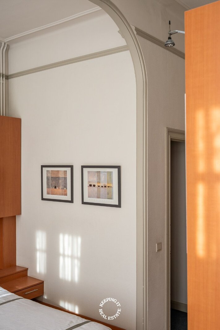 Achter de statige gevel schuilt een woning die het begrip “thuis” op elegante wijze herdefinieert. De woning ademt een sfeer van authenticiteit en grandeur, waarbij hoge plafonds, warme houten vloeren en zorgvuldig bewaarde authentieke details het rijke verleden van het pand tastbaar maken. Tegelijk biedt de woning alle ruimte om hedendaags wooncomfort volledig naar eigen wens vorm te geven.