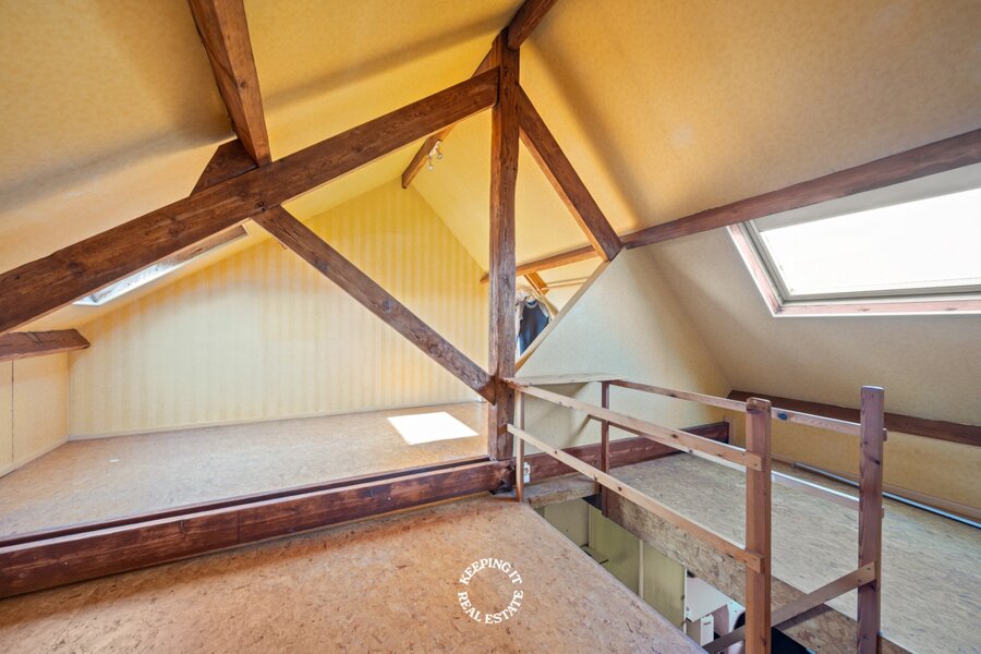 De tweede verdieping bestaat uit 3 kamers, waarvan één ruime en twee meer intieme kamers met mogelijkheid tot uitbreiding met het zolderverdiep. Alle leidingen zijn reeds voorzien om een bijkomende badkamer installeren.