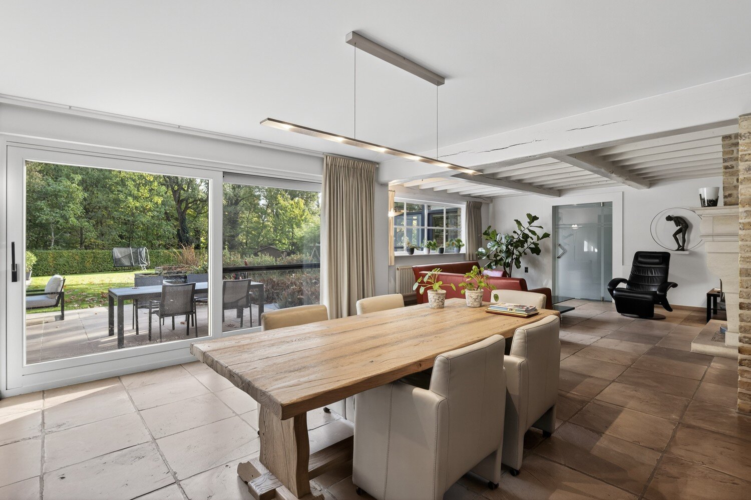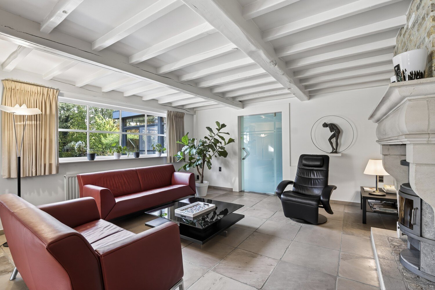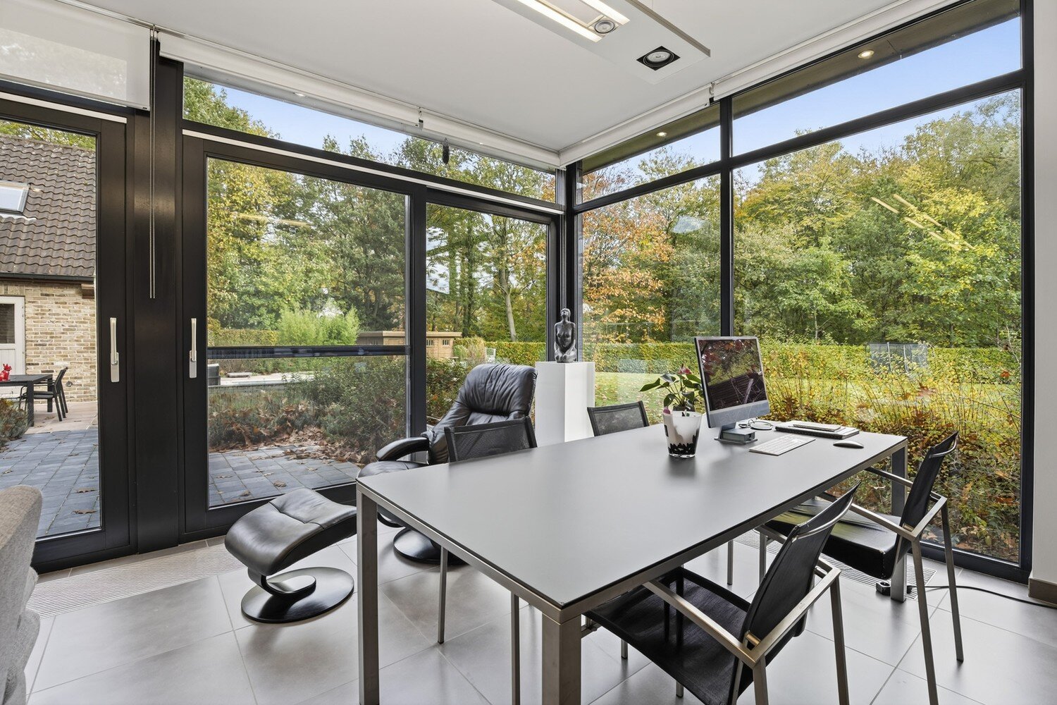 Voor wie een vrij beroep uitoefent of graag thuis werkt, biedt de woning een extra aparte bureau- en praktijkruimte met eigen inkom, wat een perfecte scheiding tussen privé en professioneel gebruik mogelijk maakt.